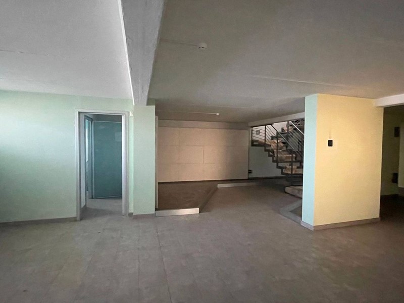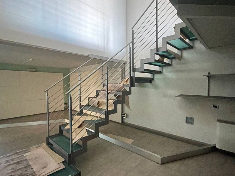 Scala interna che conduce al seminterrato, dotato di un altro ampio vano ideale per esposizioni o uffici, oltre a bagni, uffici e locali ad uso ripostiglio.