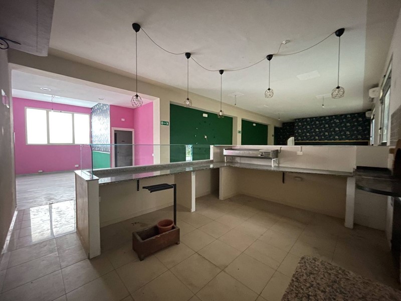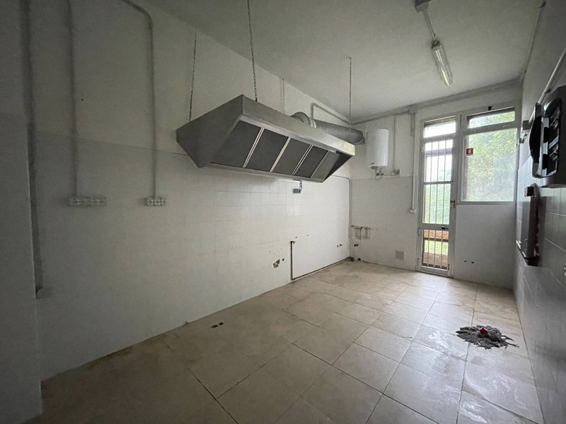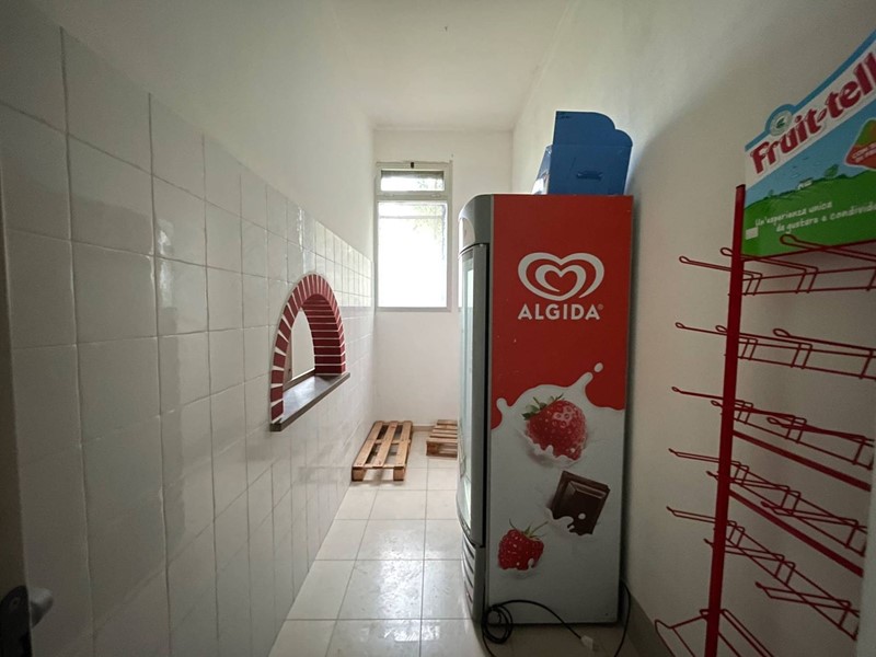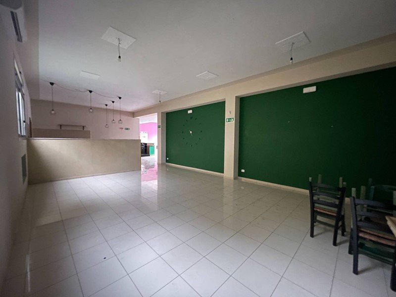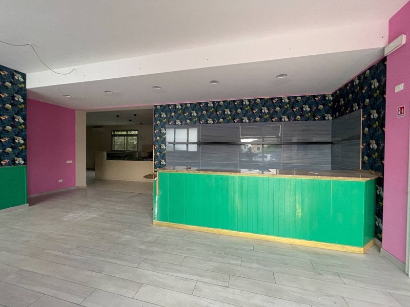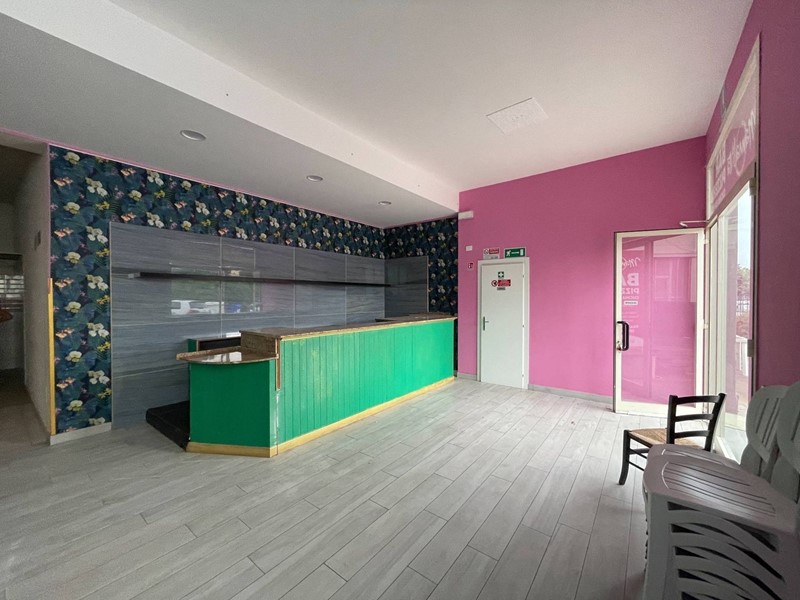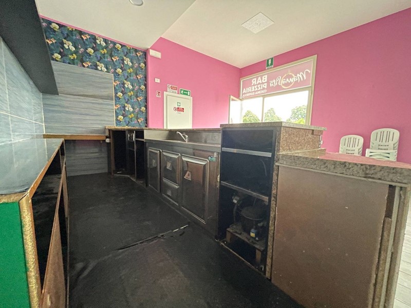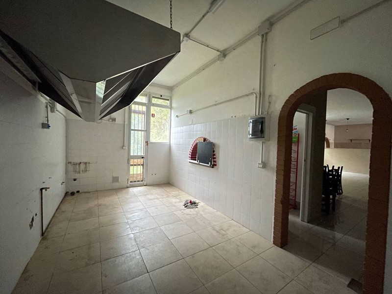 Composto da ingresso con bancone Bar, ampia sala ad uso pizzeria con bancone pizzeria con forno a legna, Cucina attrezzata con cappe di aspirazione ed accesso a resede esterna privata, ripostiglio, bagno staff e doppio bagno per i clienti.