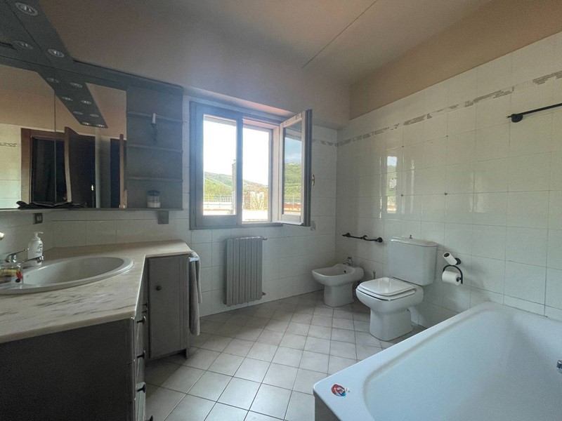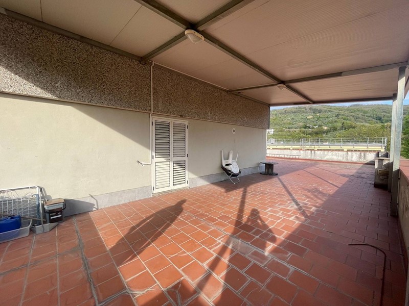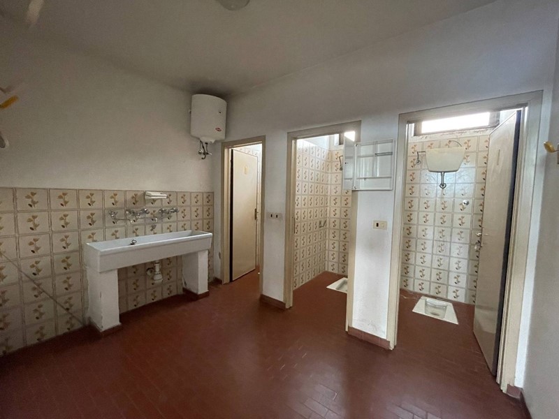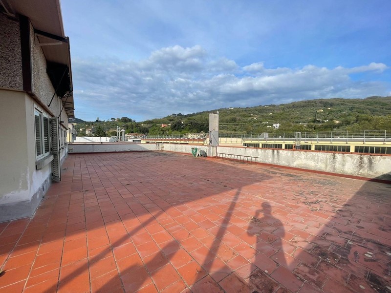 Salendo troviamo un piano ammezzato ad uso deposito e ampio appartamento ben rifinito al piano primo, composto da ampia sala, cucina abitabile con ripostiglio, due bagni, una camera matrimoniale, due camere singole, oltre a ampio terrazzo abitabile di 200 mq circa.