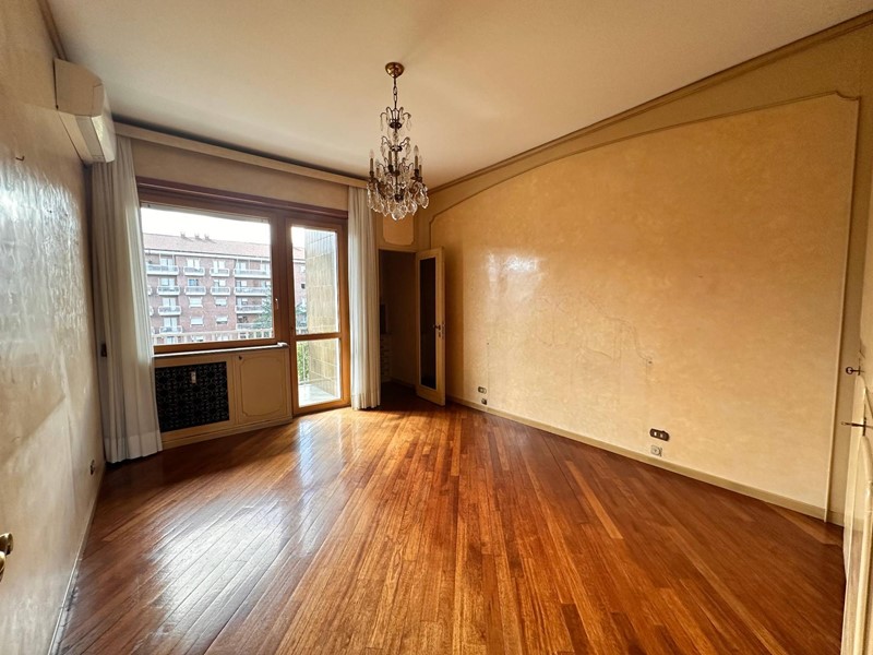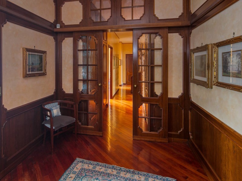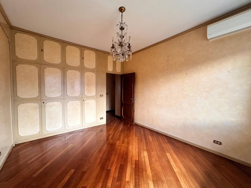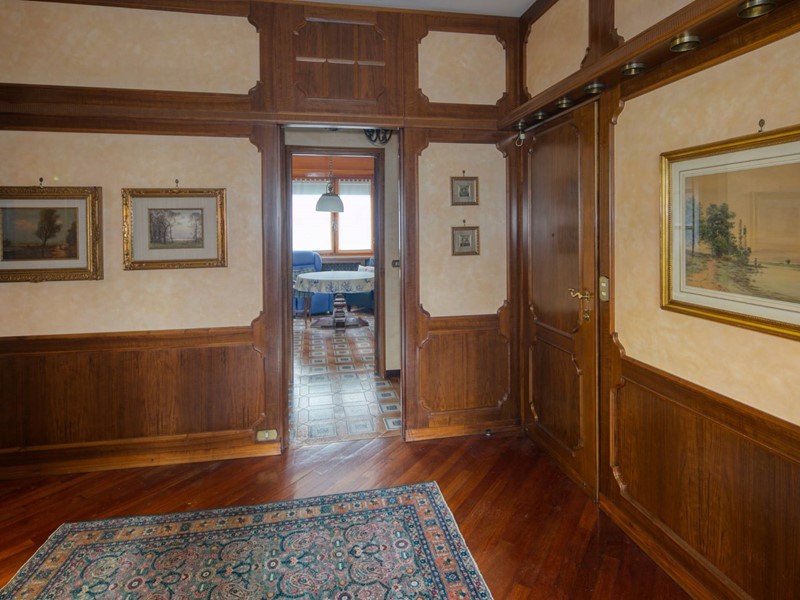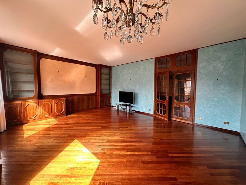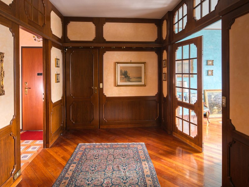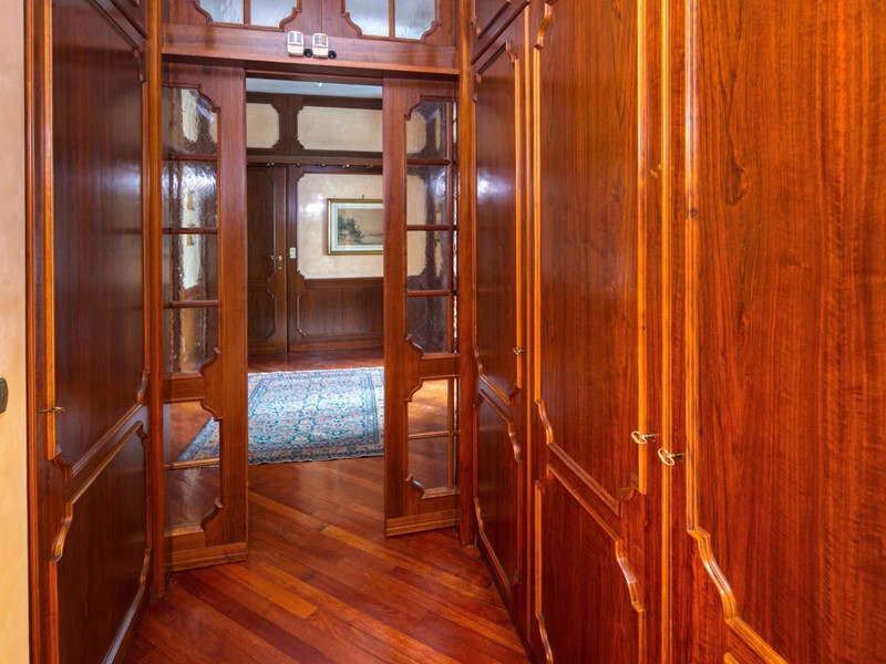 L'appartamento si presenta in buone condizioni di conservazione generale, garantendo un ambiente confortevole e accogliente fin da subito. Pur necessitando di un rinnovamento per i bagni e la cucina, gli interni sono rifiniti con materiali di ottimo livello e includono diversi arredi fissi di pregio, come un'ampia biblioteca nel salone, armadi a muro, una raffinata boiserie in legno e una spaziosa cucina abitabile completamente attrezzata.