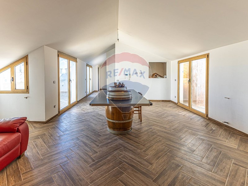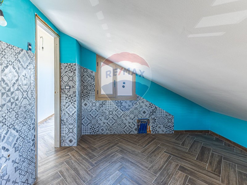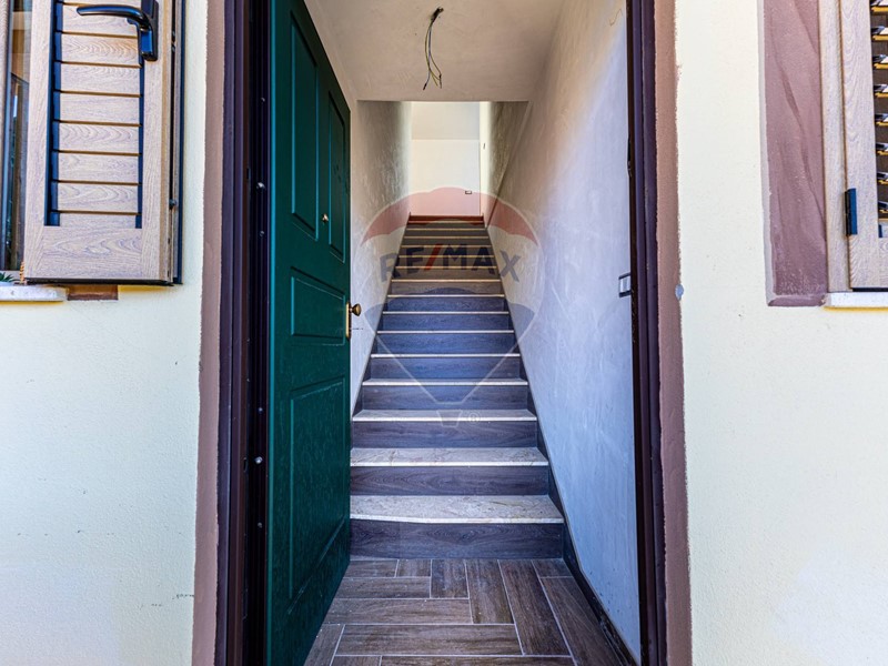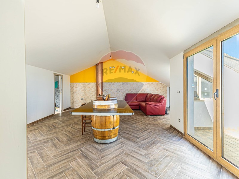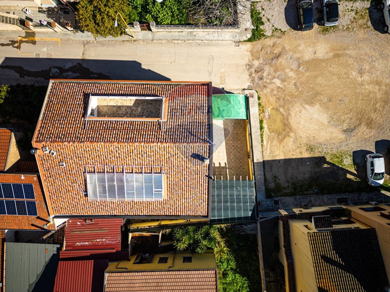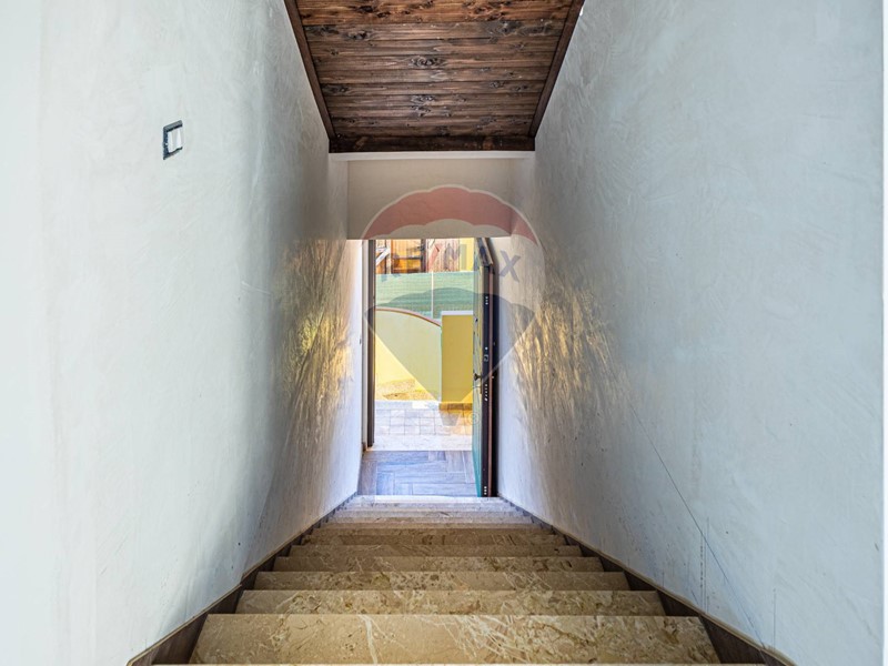 La casa si trova su un piano rialzato, rispetto alla porta d'ingresso. Le scale ci conducono alla zona giorno composta da ampio salone con alte volte a doppio spiovente - sala da pranzo con angolo cottura e possibilità di poter usufruire della predisposizione del camino, bagno con doccia, zona disimpegno - ripostiglio ed uscita sui due terrazzi (con esposizione a Nord e a Sud), che vi daranno modo di poter godere su un piacevole panorama che guarda il paese di Usini ed il paesaggio circostante e di godere di momenti di tranquillità in compagnia delle persone care.