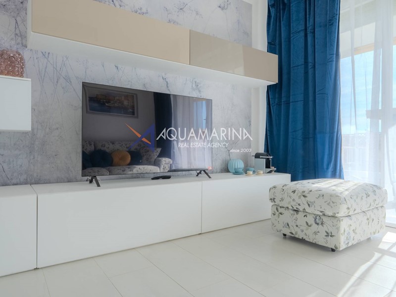 ampio soggiorno con accesso al terrazzo con vista mare parziale;