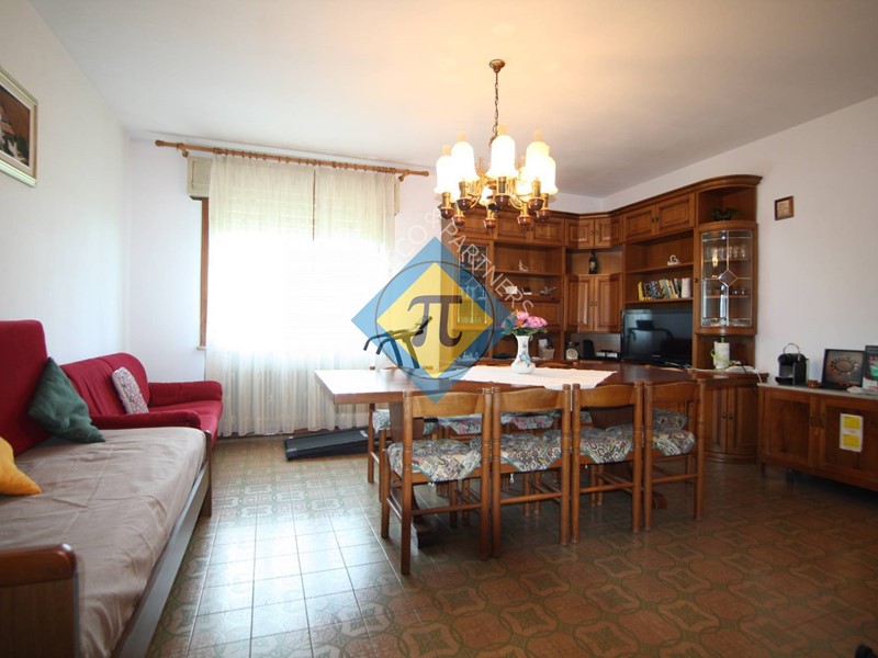 Il soggiorno è luminoso e si affaccia su un balcone, perfetto per godersi momenti di relax all'aperto.