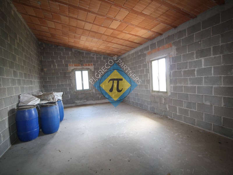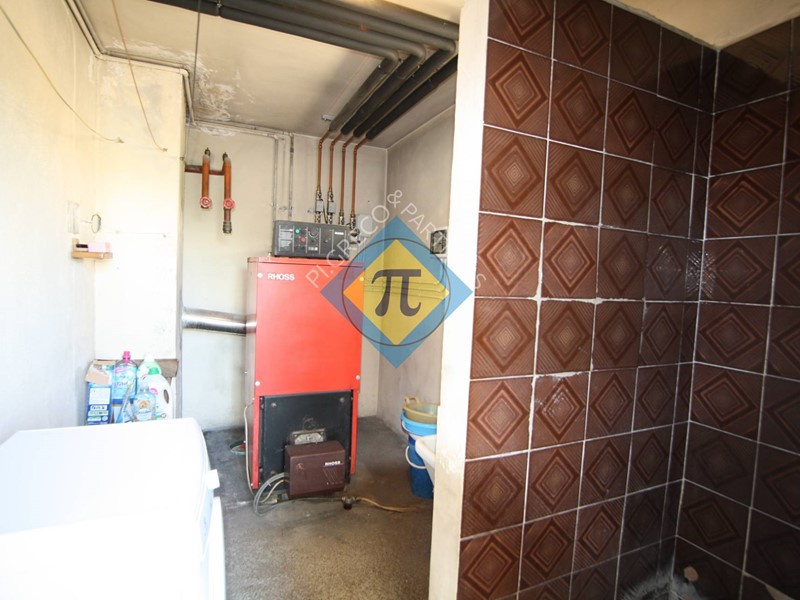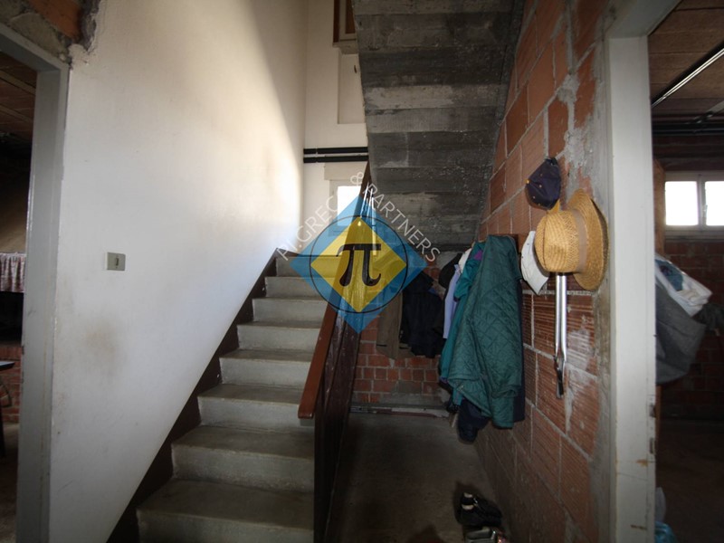 Al primo piano si accede tramite una scala esterna o interna e si trovano invece gli spazi abitativi, composti da 8 locali e 5 camere da letto.