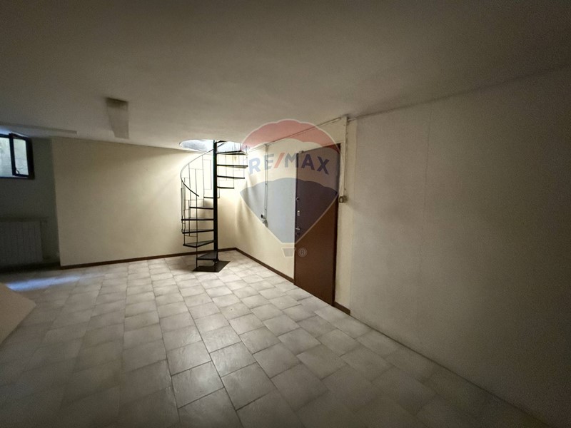 Attraverso una scala a chiocciola, ci si collega al piano interrato composto da ampio magazzino finestrato di 120 mq, che si presta a diversi utilizzi, collegato tramite due porte blindate, allo spazio destinato alle autorimesse.