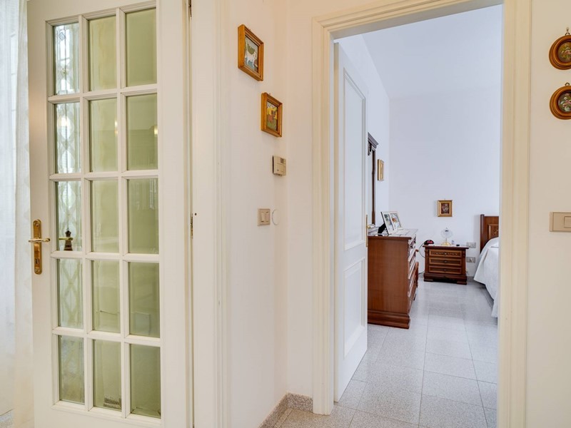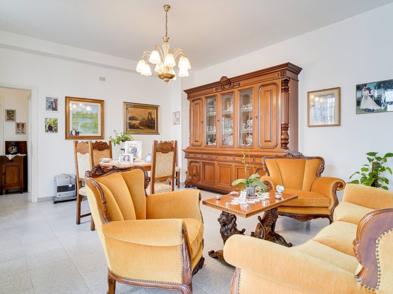 Al piano primo, si sviluppa l'appartamento padronale che misura 91 mq calpestabili, è composto da ampio soggiorno d'ingresso, cucina abitabile con camino, ripostiglio, disimpegno, due ampie camere da letto, entrambe con accesso ad una balconata comune e sala da bagno con vasca. Il tutto si presenta in uno stato di manutenzione buono, vista la tripla esposizione risulta essere molto luminoso e ben arieggiato, dotato di impianto di riscaldamento termo-autonomo.