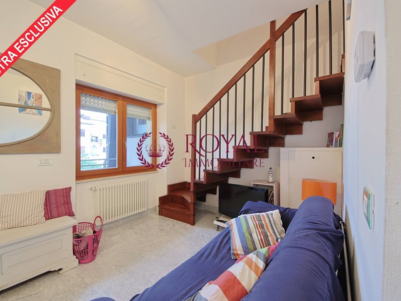 In condominio moderno con ascensore proponiamo appartamento disposto su due livelli, composto da ingresso, angolo cottura con soggiorno e accesso al terrazzo abitabile, bagno senza finestra, comoda scala per accedere al piano superiore, disimpegno con divano, camera matrimoniale, camera media, terrazzo, bagno senza finestra, ripostiglio.