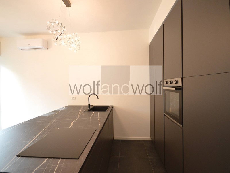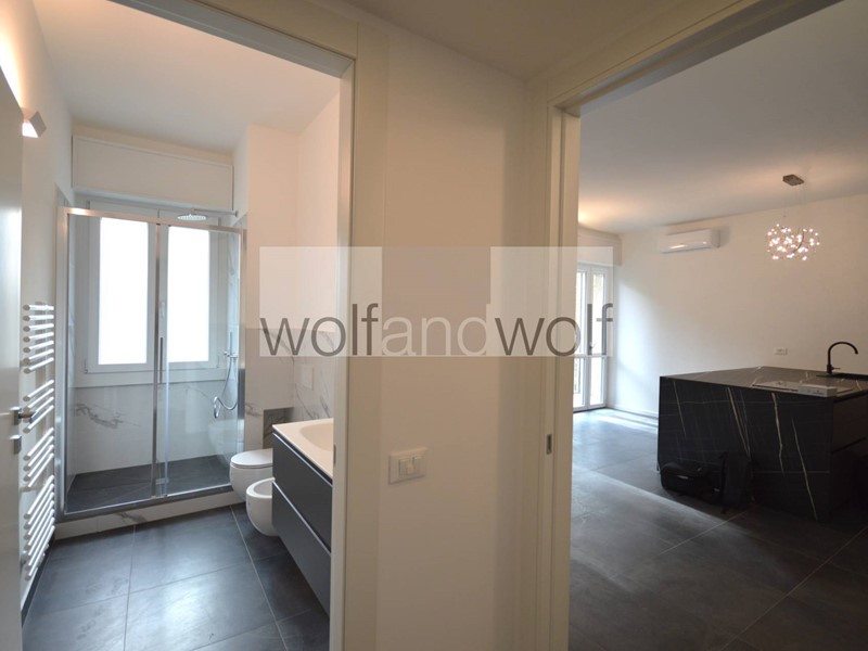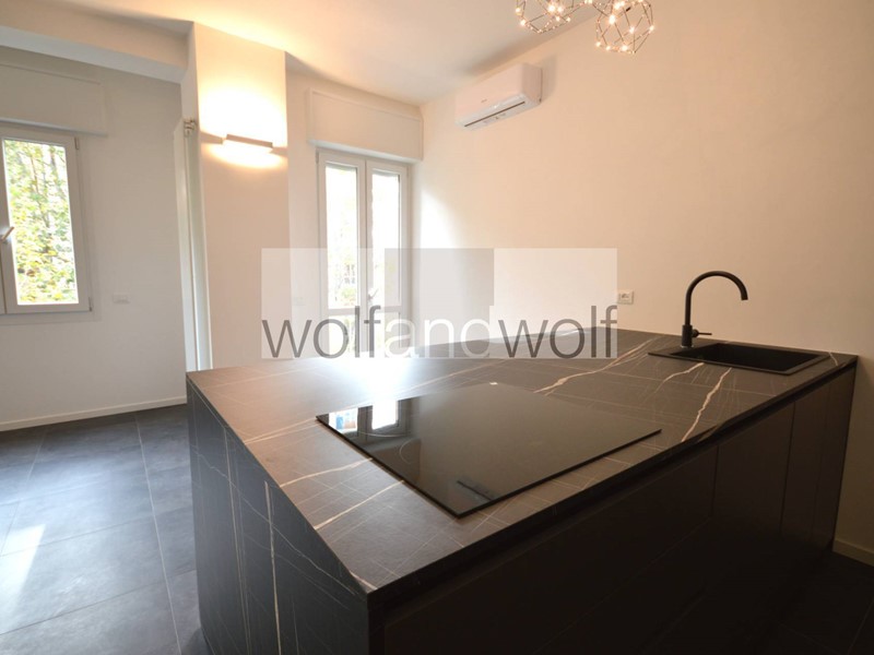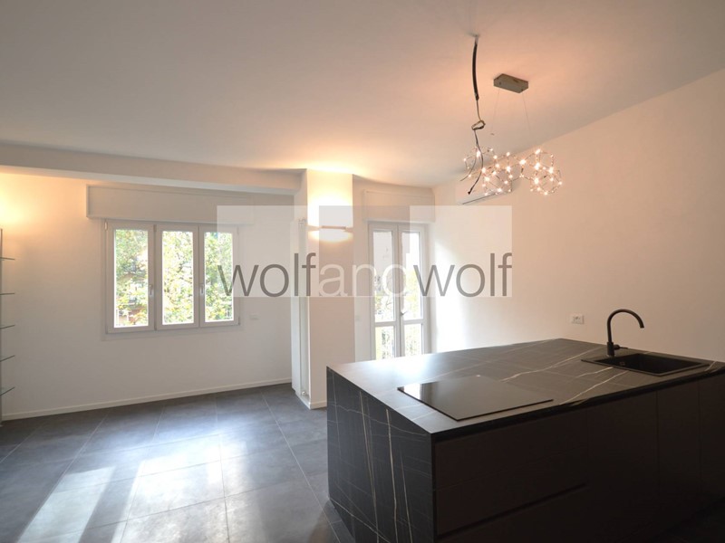 Appartamento ristrutturato posto al terzo piano con ascensore, composto da: ingresso in ampio living con cucina a vista, arredata, con penisola, con piano a induzione e parete attrezzata, camera da letto non arredata, bagno con doccia e sanitari sospesi, ripostiglio in quota, due balconi e solaio. Tutti i serramenti sono triplo vetro con apertura a battente e vasistas ed anche posizione anti condensa, impianto di condizionamento. Disponibilità locazione a società.