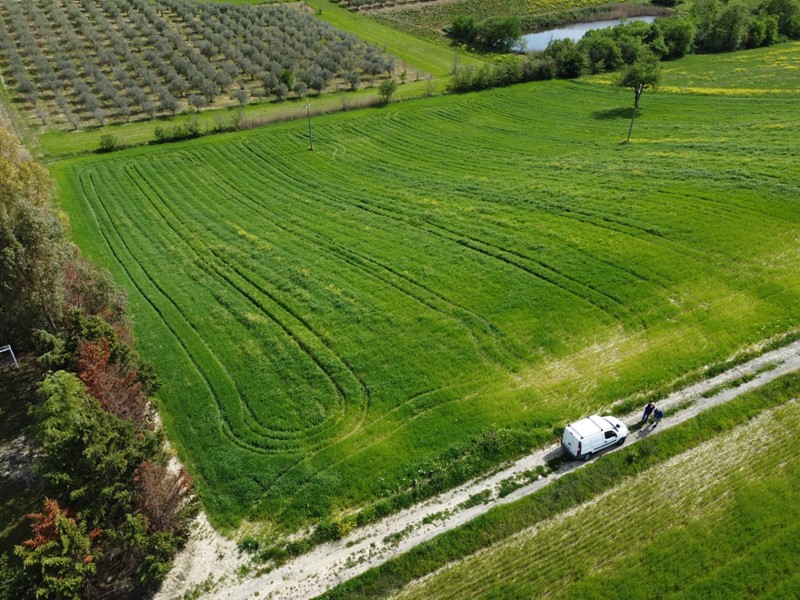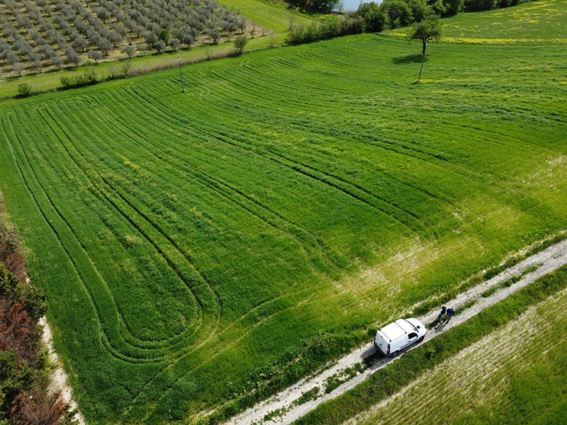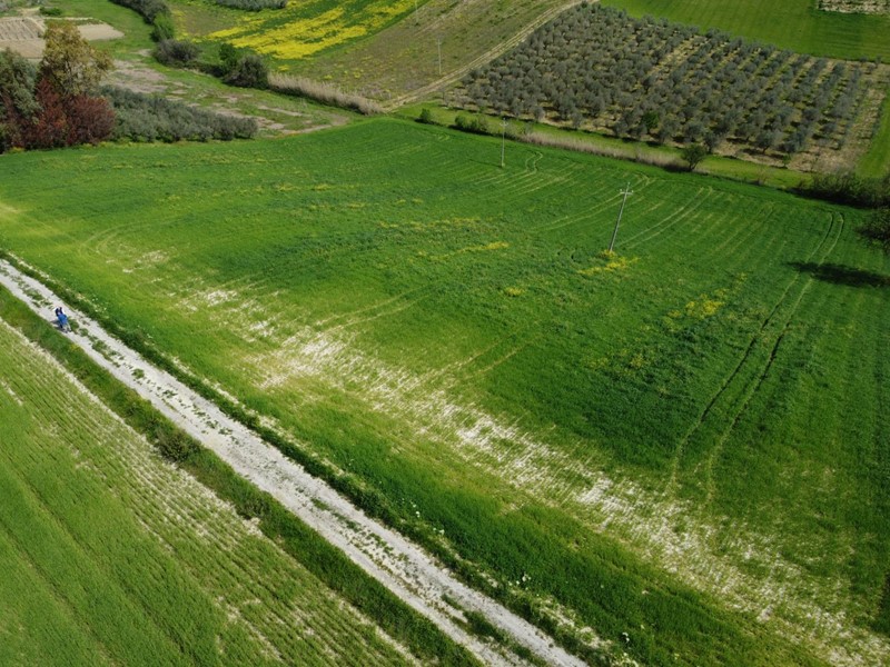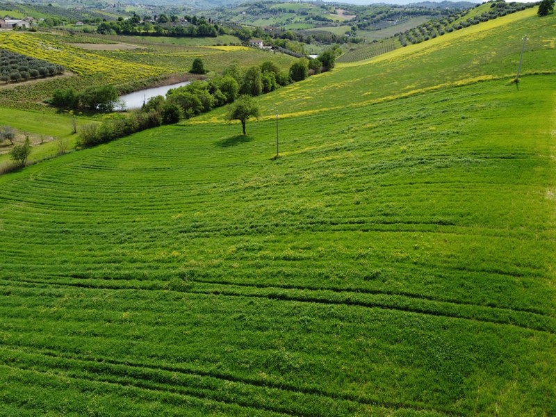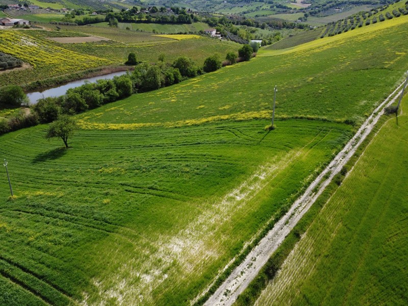 In zona collinare e panoramica, terreno agricolo semipianeggiante e fronte strada, per una superficie totale di mq 16.000