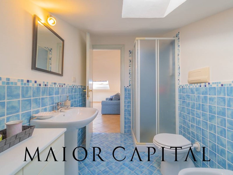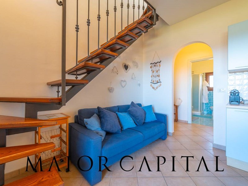 Collocato al primo piano, lappartamento gode di ottima esposizione solare, che illumina generosamente gli ambienti, riflettendosi sulle tonalità che richiamano i colori del mare e del cielo. Il luminoso soggiorno con cucina a vista si affaccia su una deliziosa veranda abitabile vista mare, ideale per trascorrere lunghe serate estive in compagnia o perfetta per chi desidera coltivare un piccolo angolo verde con piante aromatiche. Completano il primo livello una camera da letto padronale con accesso al balcone e un bagno con doccia.