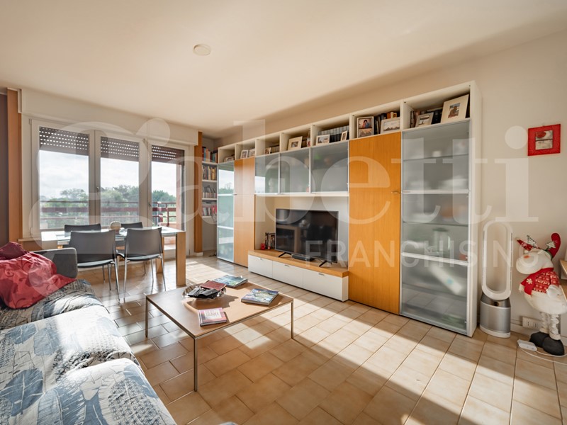 L'immobile, accogliente e ben distribuito, si apre su un ampio e piacevole soggiorno con accesso diretto a un terrazzo panoramico, perfetto per momenti di relax all'aria aperta. La cucina abitabile è spaziosa, funzionale e con grosse finestre e accesso a un balconcino che garantiscono ulteriore luce e respiro agli ambienti. La zona notte è composta da due camere da letto, di cui una con accesso a un'ulteriore balconata e doppi servizi.