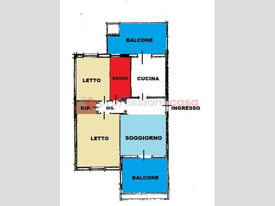 L'immobile è composta da : ingresso con soggiorno a vista,cucina abitabile , disimpegno , cameretta , camera da letto , bagno e ripostiglio . Doppia esposizione su ampi balconi .