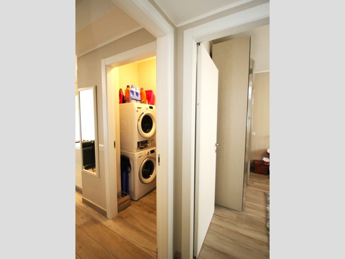 Completano la zona giorno il bagno di servizio con doccia e un ripostiglio.