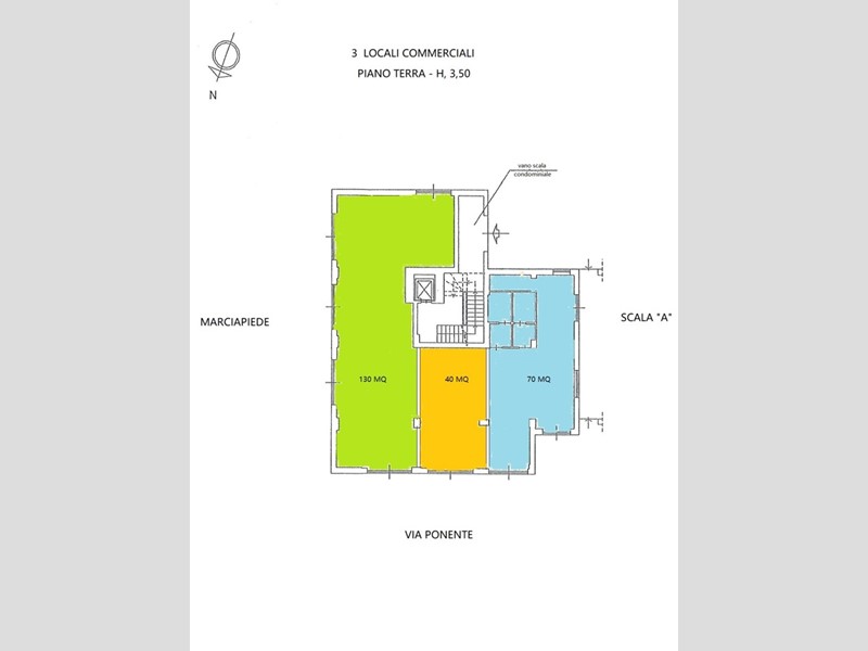 "2" locale di mq 70 composto da open space con doppi servizi dotati di anti-bagno, 2 vetrine su Via Ponente, 2 vetrine su marciapiede interno che separa la palazzina "A" dalla palazzina "B", ed una finestra sulla parte posteriore che affaccia sul cortile interno;