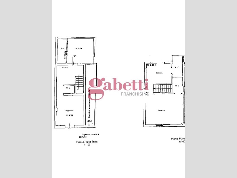 Si compone da: Soggiorno, bagno sottoscala e cucinotto con accesso a piccolo RESEDE DI PROPRIETA' di 10 mq ca con annesso uso ripostiglio. Al primo piano abbiamo due camere da letto di cui ciascuna con bagno privato.
