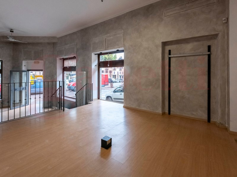 La metratura totale si divide tra la zona vendita che sviluppa una superficie di oltre 90 mq. dove è presente anche un soppalco di 30 mq., il retro con i servizi e la cantina direttamente collegata da scala interna di una superficie di 63 mq.. Soluzione commerciale caratterizzata da un'ottima illuminazione data dalle cinque vetrine oltre all'ingresso fronte piazza e dall'esposizione angolare, nonché di grande visibilità in zona di fortissimo passaggio. Comodità ai collegamenti viari e facilità di parcheggio all'esterno.