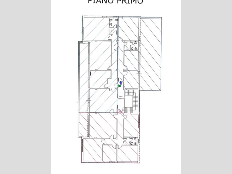 - "1" ufficio di mq 104 composto da ingresso/corridoio, 3 stanze, 1 bagno con anti-bagno e terrazzo;