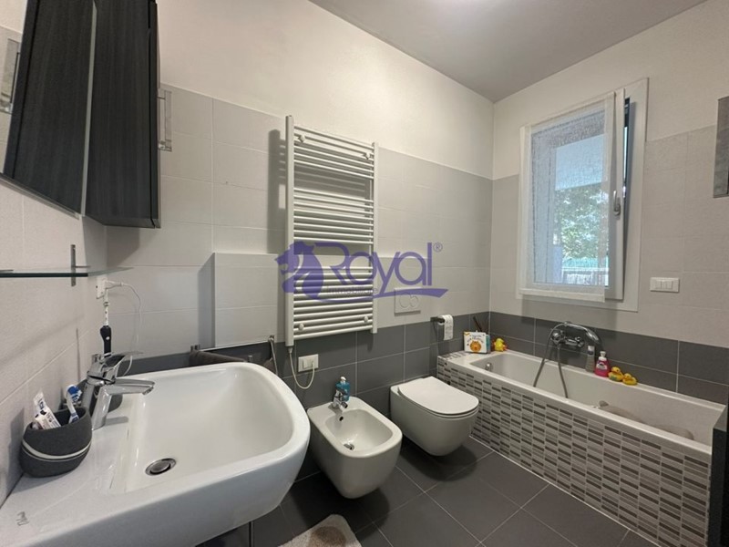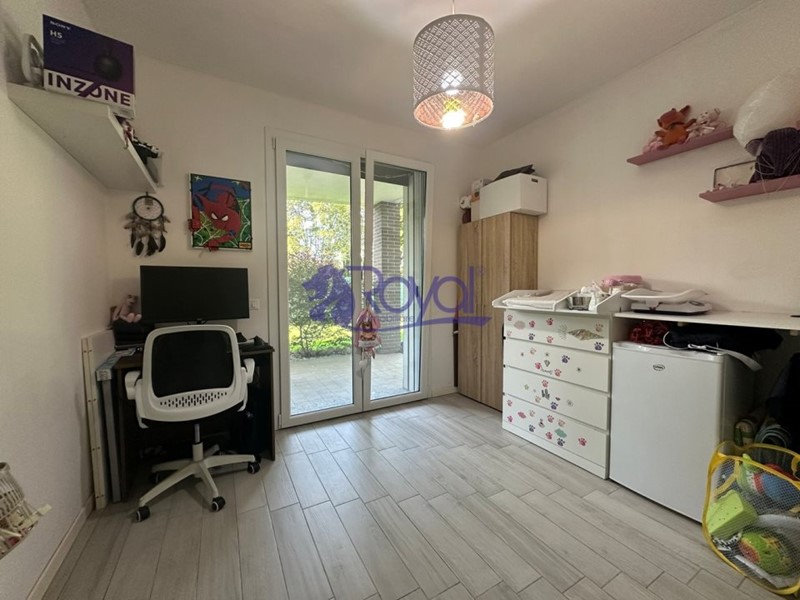 L'abitazione è posta in una signorile palazzina, dalla finiture ricercate e ricca di verde, ubicata in una bellissima zona residenziale di ultima realizzazione, tranquilla e comoda per l'ingresso autostradale o gli spostamenti con i paesi limitrofi, potendo sfruttare le vicine vie principali di collegamento! All'appartamento si accede a piedi percorrendo un gradevole vialetto condominiale, oppure direttamente dal piano garage, utilizzando il vano scala / ascensore se si parcheggia nell'autorimessa di proprietà. La casa è suddivisa in ingresso su zona living soggiorno con cucina, disimpegno con ripostiglio, doppi servizi, camera singola e camera matrimoniale con cabina armadio. L'area esterna di proprietà la fa da padrona con il giardino di ben 215 mq, dotato di ingresso di servizio indipendente da strada e porticati di ulteriori 40 mq, il tutto circonda l'appartamento che può quindi godere di ampi spazi dove potersi rilassare oppure trascorrere momenti di convivialità nella bella stagione. L'abitazione è dotata di riscaldamento a pavimento, ventilazione meccanica controllata, impianto di irrigazione, smart domotica per gestione luci e tapparelle, zanzariere, impianto di climatizzazione con pompa di calore posto nella zona living e nella camera matrimoniale (quella singola è comunque accessoriata di predisposizione), predisposizione impianto di allarme, oltre impianto fotovoltaico condominiale. Presente box singolo di generosa metratura, posto auto di proprietà e cantina. - Maggiori Dettagli: Climatizzato, Porta blindata