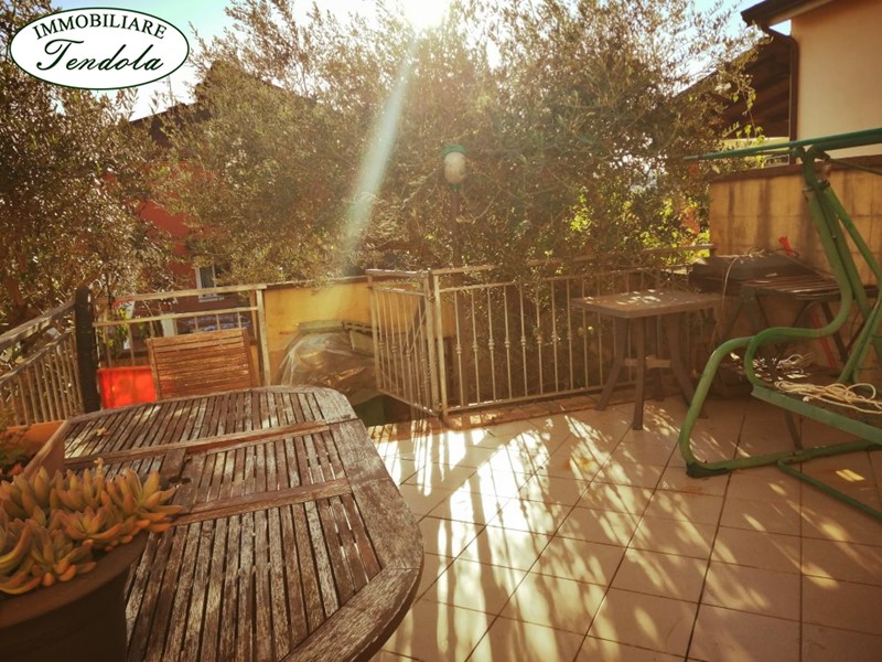 CASTELNUOVO MAGRA località MOLICCIARA in posizione soleggiata e tranquilla ma prossima ai servizi,con parziale vista mare, terratetto semindipendente disposta su due livelli,oltre a mansarda .\nL'immobile risulta così suddiviso:piano terra posto auto privato;piano primo ingresso,soggiorno con camino , zona cottura,ripostiglio e servizio;spazio esterno privato composto da un grande terrazzo vivibile con piccolo giardinetto laterale;piano secondo due camere ,bagno padronale,terrazzo;al piano terzo ampio sottotetto dove è possibile creare ,secondo le esigenze , una terza camera o zona living/relax/studio.