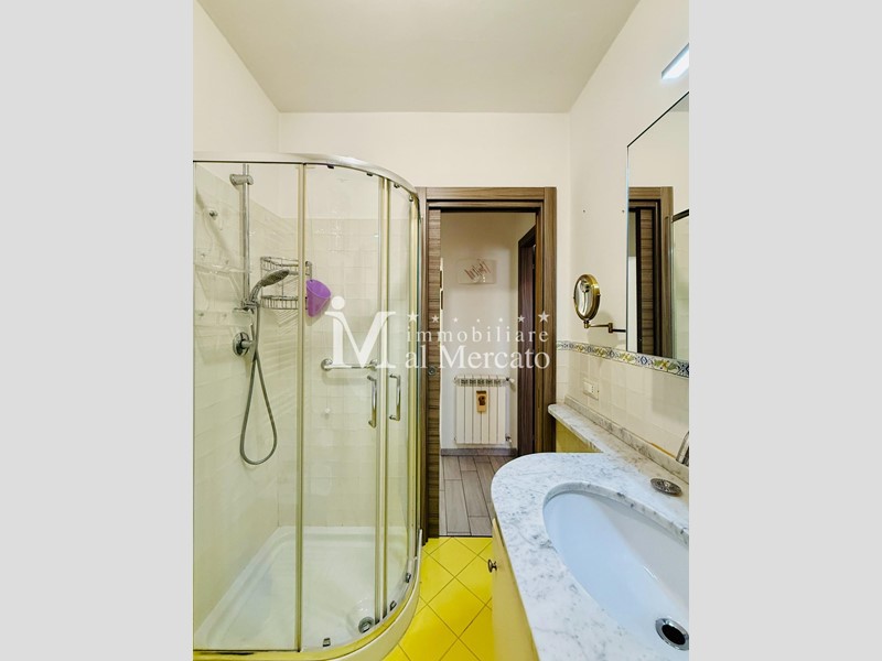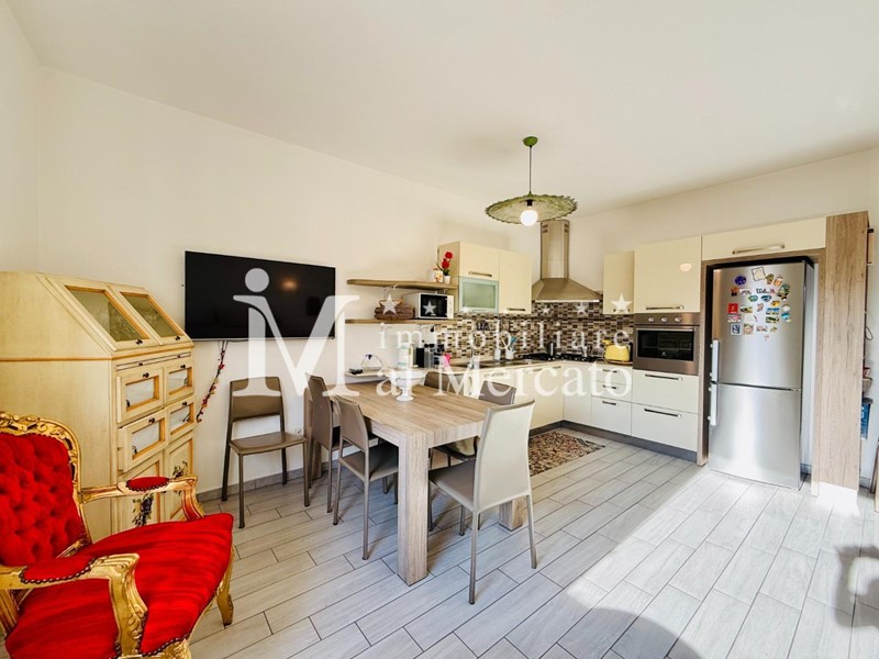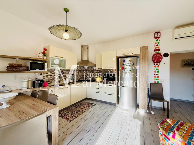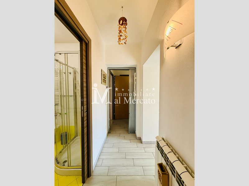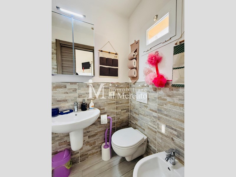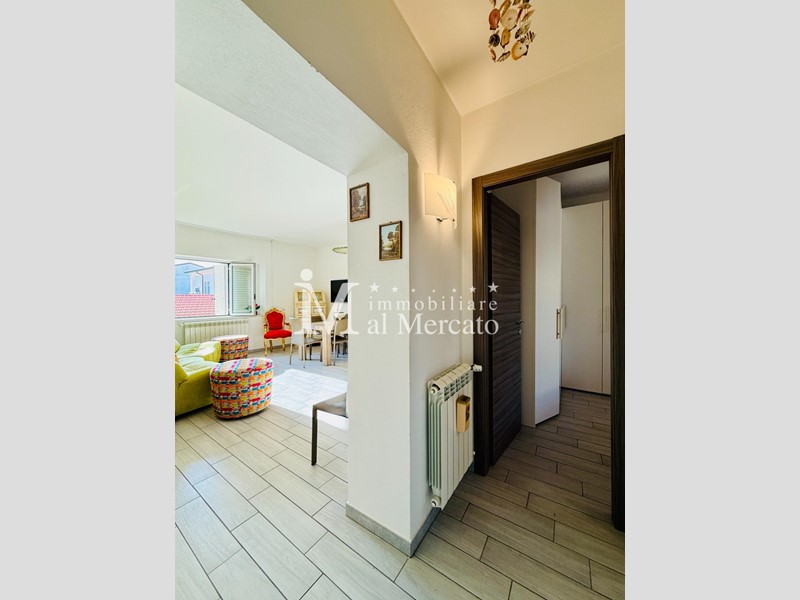 Al suo interno e' cosi' composto Ingresso , ripostiglio , Soggiorno- cucina ampia e luminosa ,camera matrimoniale con bagno en suite con vasca , una cameretta anch'essa con bagno in camera , ulteriore bagno con doccia, inoltre molto utile l'appartamento possiede una soffitta comoda come ripostiglio alla quale si accede con scala retrattile.