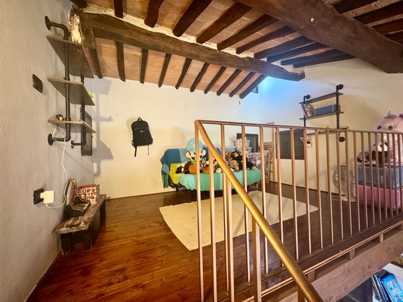 • Piano primo: ampio soggiorno-pranzo, sala con camino originale, tre grandi camere da letto, studio con soppalco in legno, due bagni e ripostiglio.