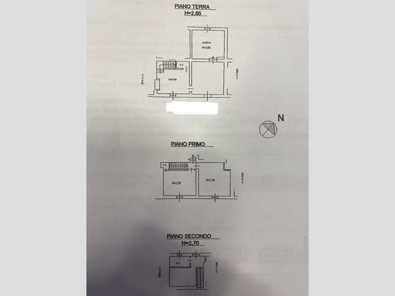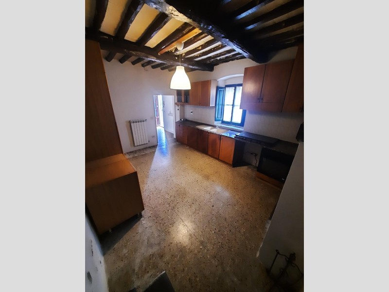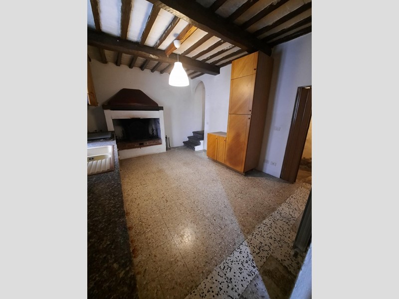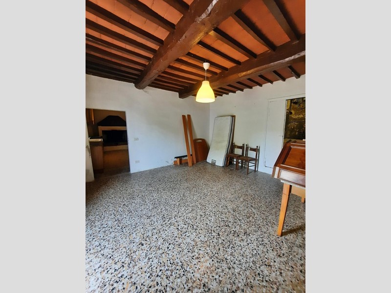 Si propone in vendita porzione di terratetto da rimodernare, stile rustico con travi in legno a vista, composto al piano terra da ingresso con sala, cucina, ripostiglio e ampia cantina MQ. 20 adiacente la sala, piano primo due camere matrimoniali, piano secondo con altra stanza per eventuale camera e servizio finestrato.