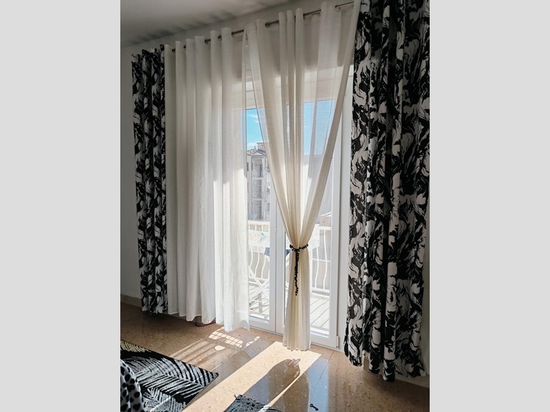 Ampio ingresso, sala con bel balcone, cucina con secondo balcone, altro ingresso con comodo armadio a muro, 2 camere matrimoniali di cui una con uscita nel balcone , bagno con doccia e finestra, ripostiglio. Termo-centrale.