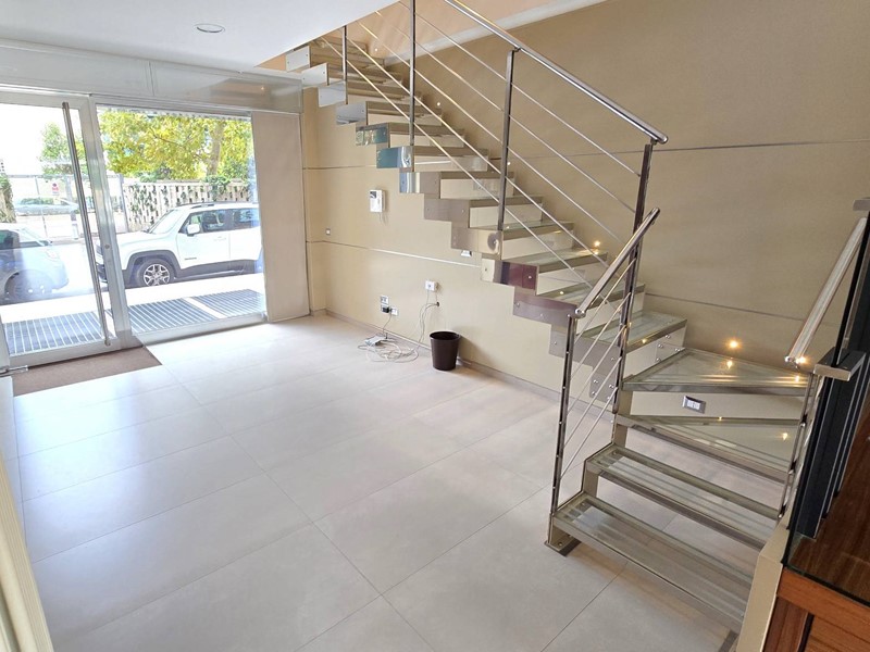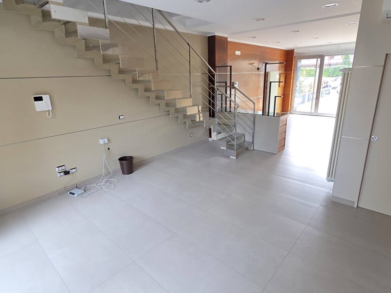 A pochi passi dal nuovo Parco della Giustizia, in una zona in forte espansione e di crescente interesse commerciale, proponiamo in locazione un elegante e rifinito locale commerciale di 55 mq. c.a, al quale si aggiunge un vano ad uso ufficio di ulteriori 16 mq. c.a, collegato internamente da una splendida scala interna in acciaio e vetro retroilluminata, per una superficie complessiva di circa 71 mq.