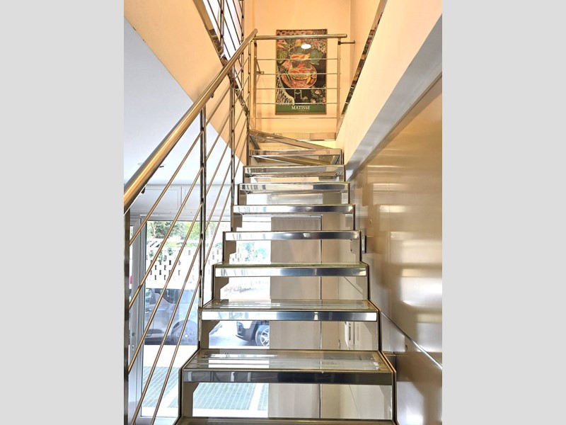 · Scala interna in acciaio e vetro retroilluminata di design.