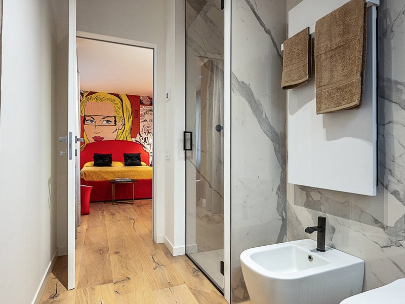 La zona notte ospita una spaziosa camera da letto padronale con bagno en suite, impreziosita da finiture di alta qualità, a cui si affianca un secondo bagno di servizio pensato per garantire la massima funzionalità.