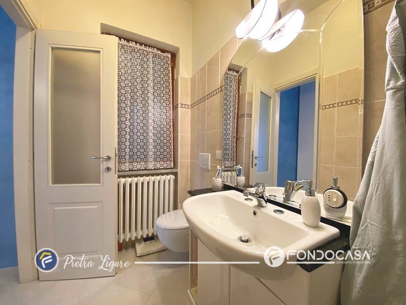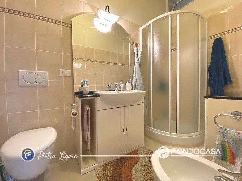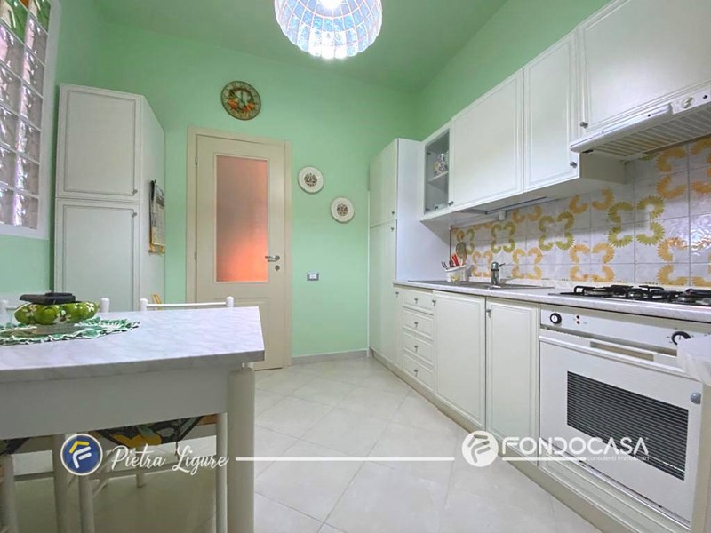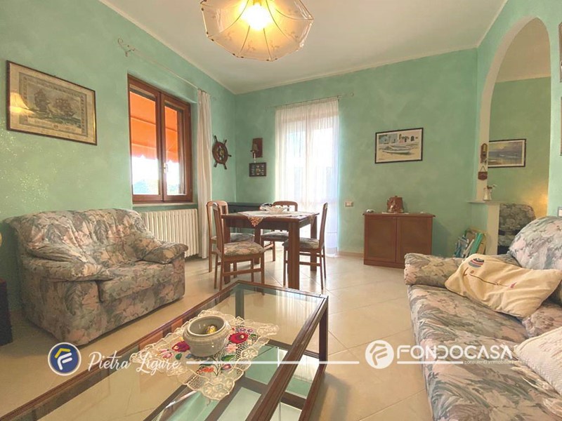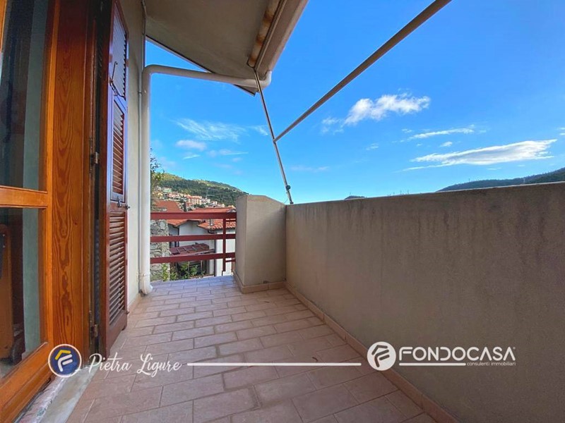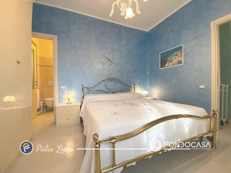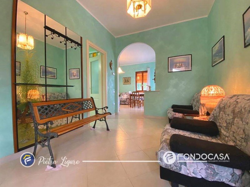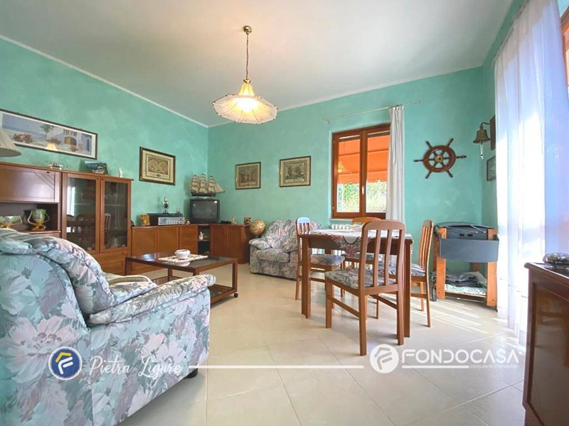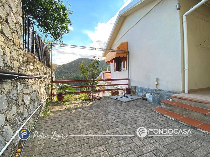 Al primo ed ultimo piano di una casa bifamiliare, quindi senza spese condominiali, trilocale composto da ingresso alla genovese, salotto con doppia esposizione e balconata vista mare, ampia cucina affacciata sulla terrazza attrezzata e sul giardino disposto su tre terrazzamenti, camera da letto con bagno privato (dotato di doccia e finestra), e bagno con doccia.