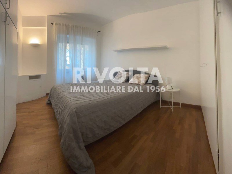 Rivolta affitta in esclusiva - Vigna Stelluti in condominio signorile con servizio di portineria con affaccio interno silenzioso e molto luminoso appartamento ristrutturato di 60 mq al 2° piano composto da ingresso con libreria su misura, soggiorno con uscita su terrazza abitabile coperta di 15 mq circa con tende da sole e tavolo con sedie e ripostiglio, cucina separata su misura con finestra completa di tutti gli elettrodomestici, lavastoiviglie lavatrice e asciugatrice, camera da letto matrimoniale con armadi a muro e scarpiera e mobile tv, soppalchi, ampio bagno con doccia (che verrà ristrutturato con nuovo mobilio).