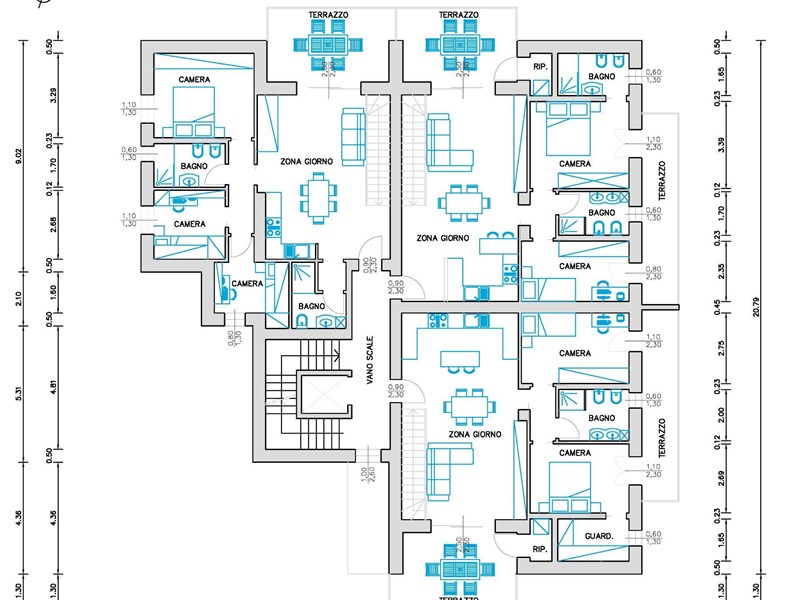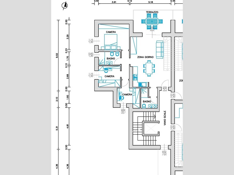Vendesi appartamento di nuova costruzione ad un prezzo estremamente interessante. L'immobile è sito al primo piano in piccola palazzina composta da sole 5 unità abitative e si suddivide in: ingresso su zona giorno openspace con accesso diretto al terrazzo, bagno cieco di servizio, disimpegno notte, camera matrimoniale, bagno principale finestrato con doccia e due camere singole. L'immobile è completato da garage al piano terra accessibile direttamente dall'appartamento tramite scala interna, cantina, posto auto esterno e giardino privato.