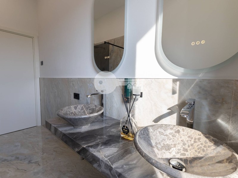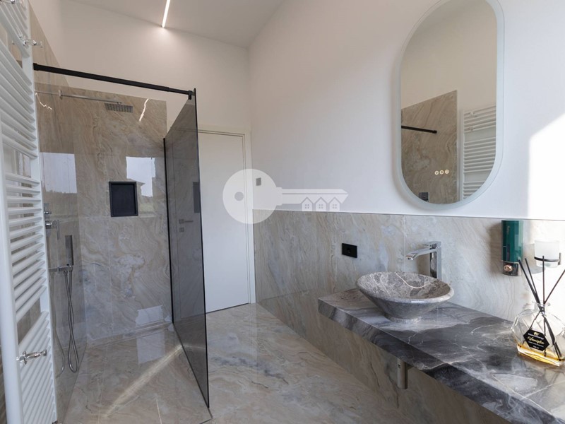 Labitazione è dotata delle migliori tecnologie: impianto di riscaldamento a pavimento, aria condizionata, domotica completa, infissi antisfondamento, tapparelle elettriche, impianto fotovoltaico da 5 kW, sistema dall'arme perimetrale, impianto di videosorveglianza e illuminazione completa all'esterno. Allesterno, un locale tecnico appositamente realizzato ospita tutte le macchine degli impianti, mantenendo ordinata e pulita lestetica della proprietà senza nulla a vista.