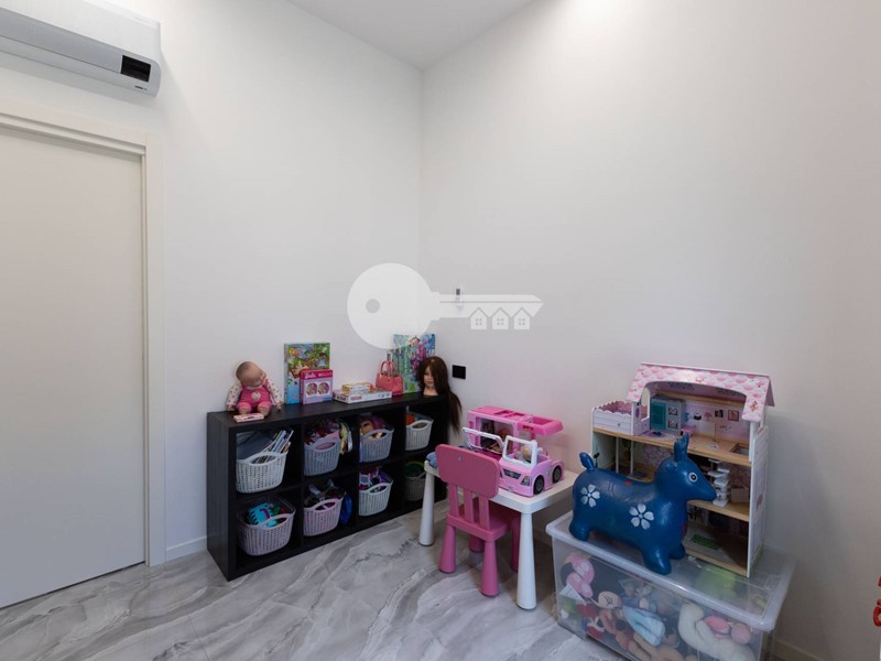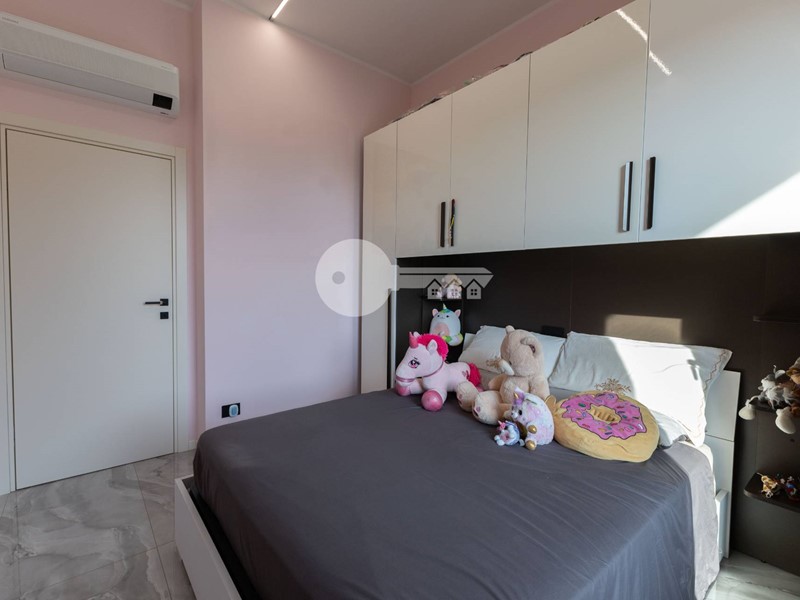 La zona notte è composta da una camera matrimoniale con cabina armadio, due camerette, due bagni di cui uno con lavanderia e un pratico armadio a muro allingresso. Ogni ambiente è stato progettato per garantire funzionalità e comfort quotidiano.