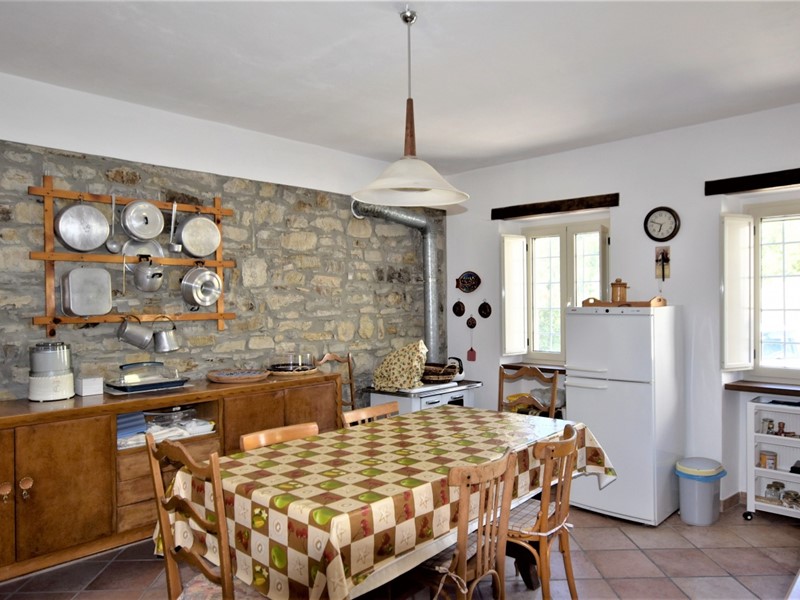 Limmobile: la casa è una costruzione tipica in sasso con copertura in coppi antichi sapientemente ristrutturata abbinando soluzioni tecniche moderne alla salvaguardia e al riutilizzo dei materiali originali ed è così composta: ampio soggiorno con camino a legna, con canalizzazione dellaria riscaldata al piano superiore, cucina abitabile con stufa economica a legna, doppi servizi con finestre, 3 camere da letto, box auto doppio, grande cantina con antica pavimentazione originale in pietra, legnaia, ampia terrazza per cene in compagnia e dotata di forno a legna, cortile e piccolo giardino; la proprietà è completata da un boschetto a circa 200 metri dallabitazione.