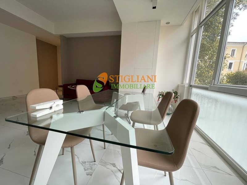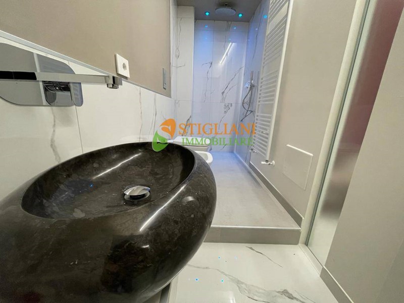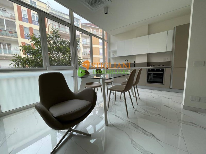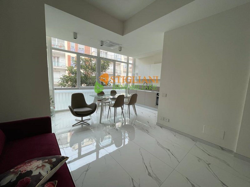 In viale Principe di Piemonte, appartamento completamente ristrutturato e finemente arredato, posto al piano primo e composto da open space con cucina completa con vetrata, camera matrimoniale, bagno con cromoterapia e lavanderia. Infissi nuovi con serrande elettriche, porte in cristallo. Interamente climatizzato caldo/freddo. (750,00+50,00 di spese). Disponibile dal 03/11/2025.