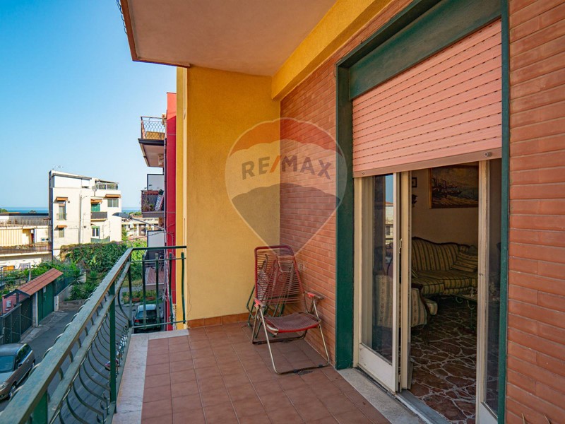 La proprietà comprende inoltre una terrazza panoramica, condivisa con lappartamento del secondo piano, che offre una vista suggestiva sul mare e sullEtna.