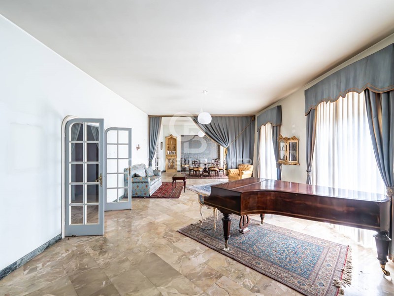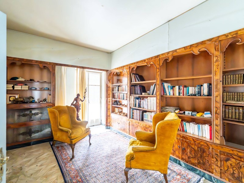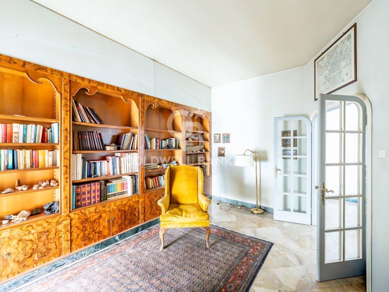 Ambienti ampi e luminosi, tra cui un grande salone, uno studio con mobili antichi ad incasso, e una zona notte composta da tre camere da letto e servizi.