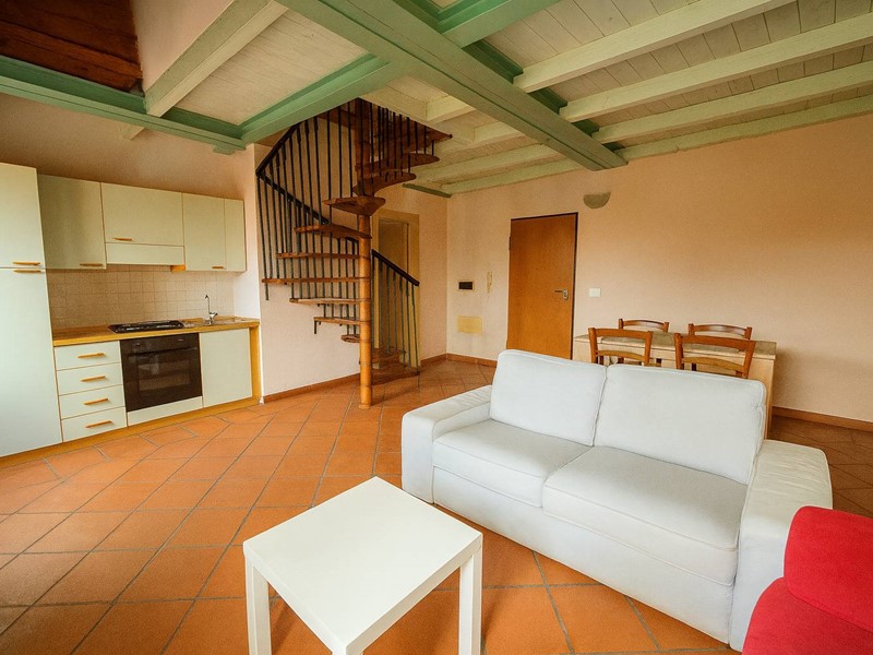 ingresso, ampio soggiorno con angolo cottura, 1 camera letto matrimoniale, bagno e ripostiglio.