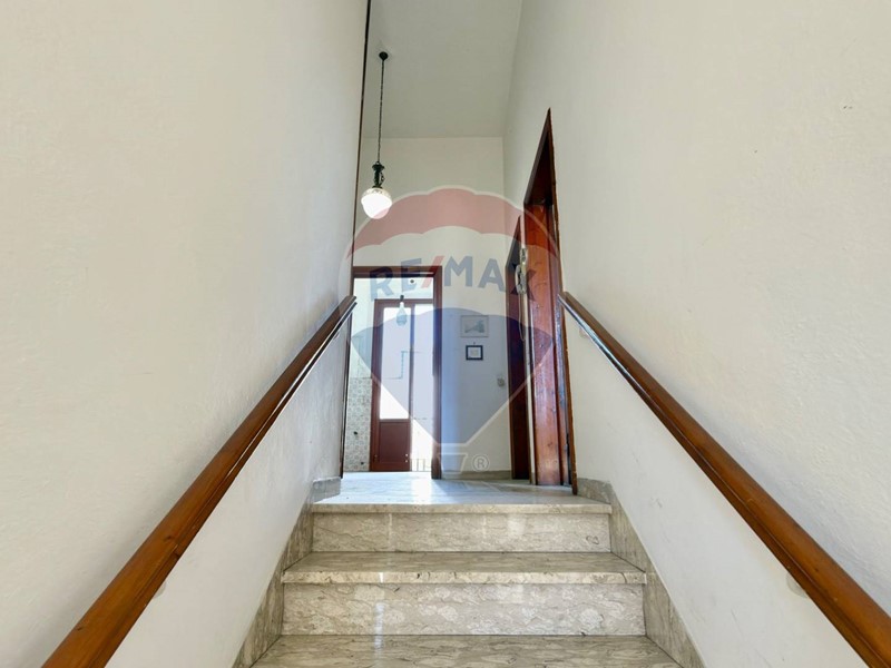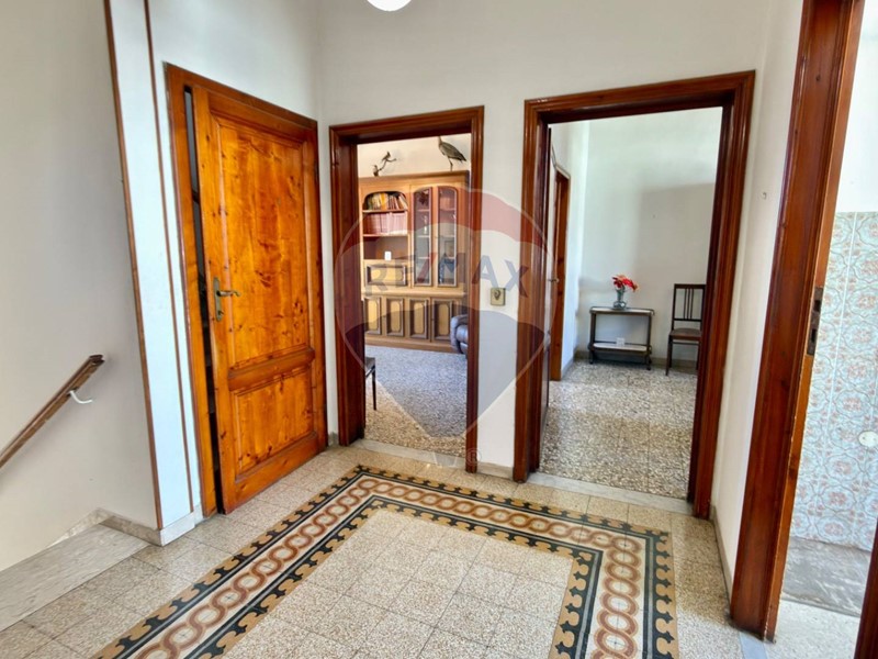 La scala interna collega il piano terra al livello superiore, dove si sviluppa la parte abitativa principale: un ampio disimpegno, una cucina abitabile, una sala da pranzo, un soggiorno luminoso, due camere matrimoniali e un bagno finestrato.