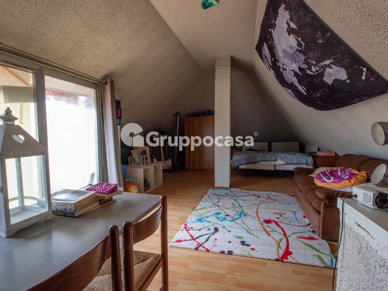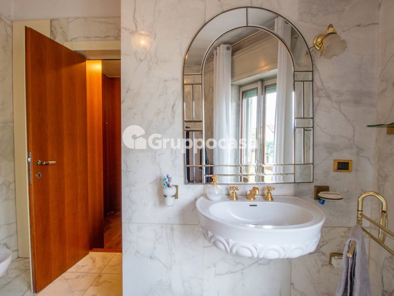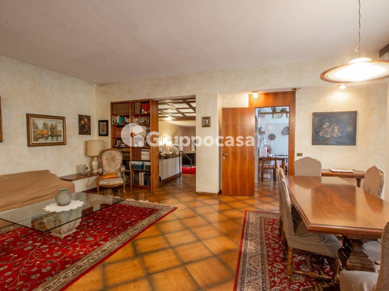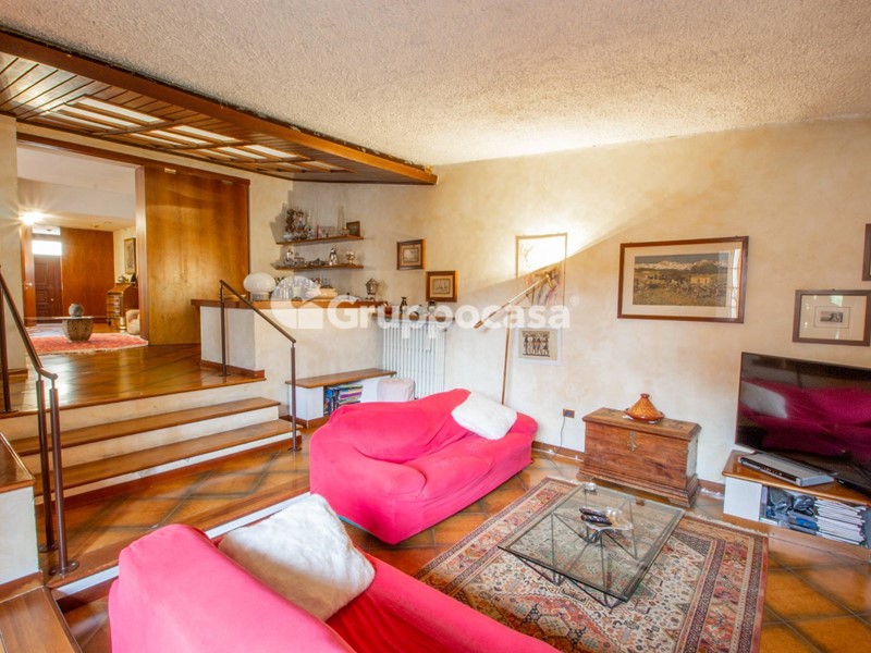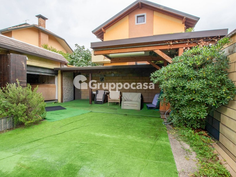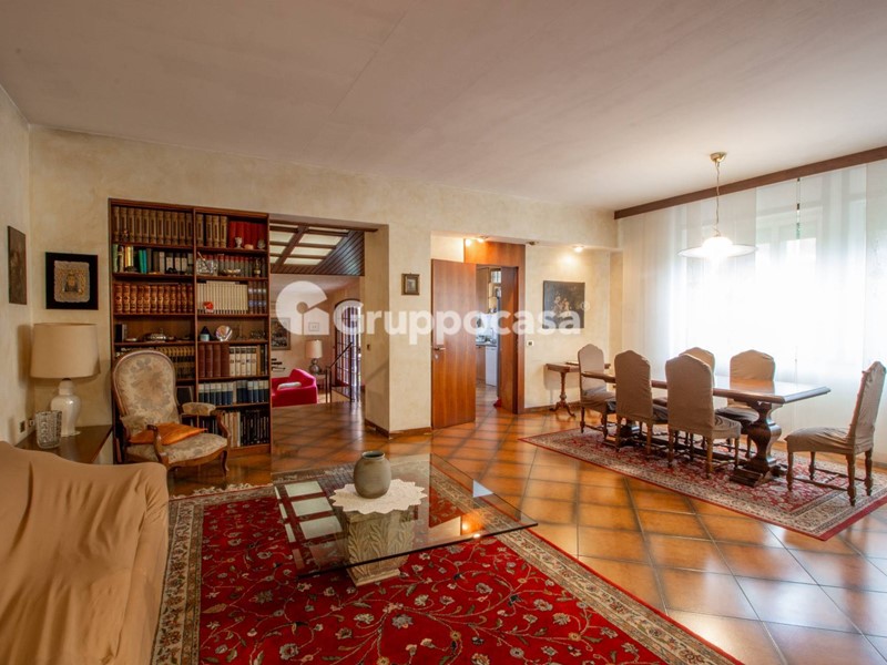 L'ingresso si apre sul luminoso soggiorno con sala da pranzo, cucina abitabile con accesso diretto al giardino e un locale studio; attraverso la scala interna si raggiunge il primo piano, composto da tre camere da letto e doppi servizi finestrati con vasca e doccia. Al piano sottotetto troviamo la mansarda con terrazzo, mentre al piano seminterrato la cantina con locale caldaia.