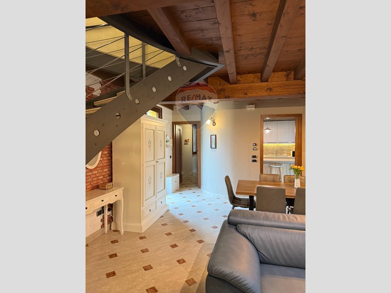 Tetto in legno sia al piano inferiore che superiore, che dona calore e carattere