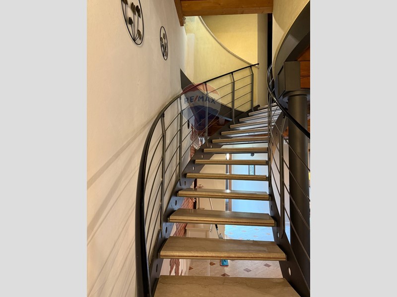 Scala in ferro battuto e marmo, battiscopa coordinati