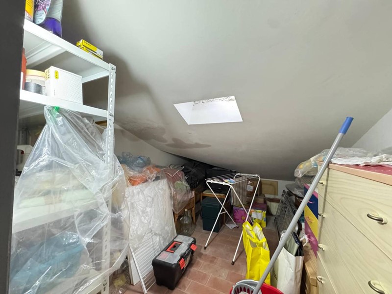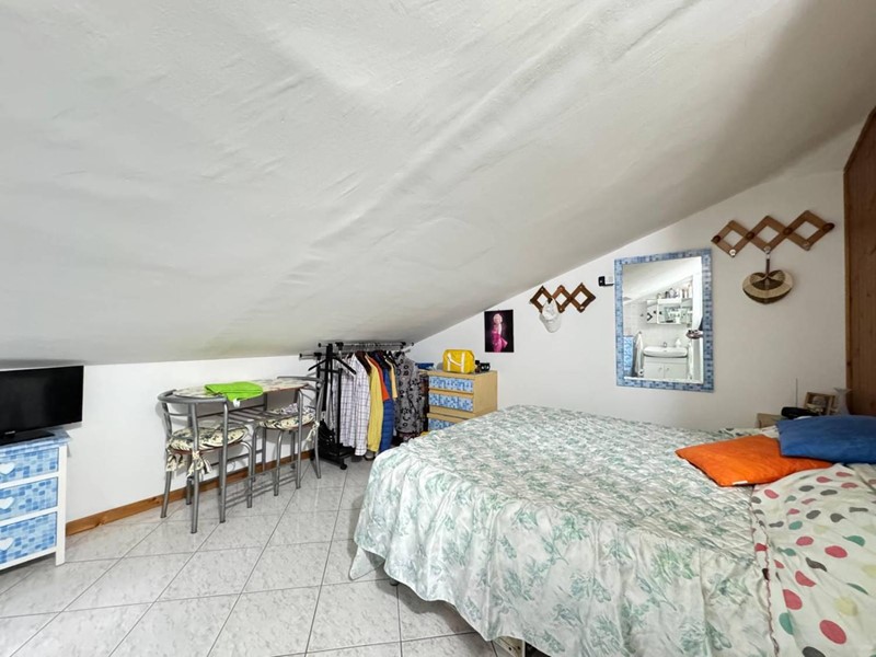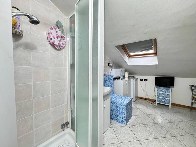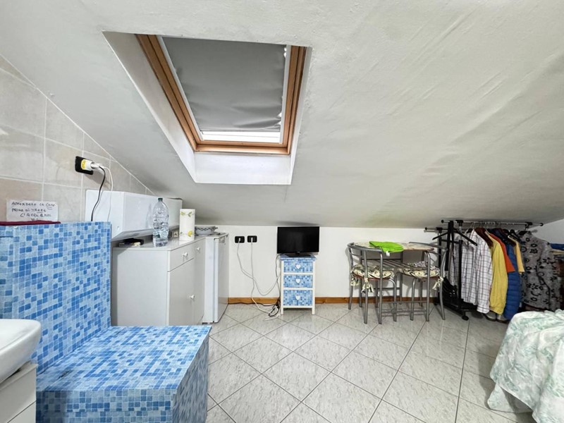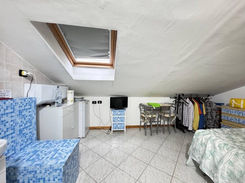 L'immobile è così composto: ingresso, soggiorno con cucinotto, ripostiglio, bagno con box doccia, camera matrimoniale, cameretta e due balconi vista mare. A completare la proprietà vi sono al secondo piano una comoda soffitta ad uso ripostiglio ed un locale sottotetto di circa 15mq con velux, box doccia e servizi. Inoltre, è provvisto di un posto auto assegnato all'interno del condominio.