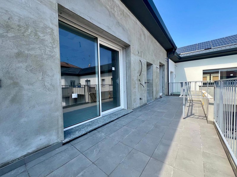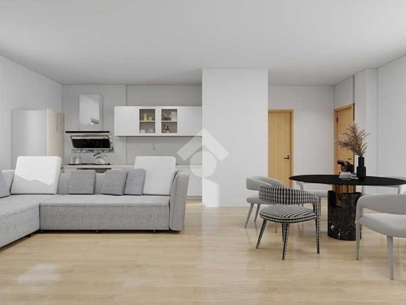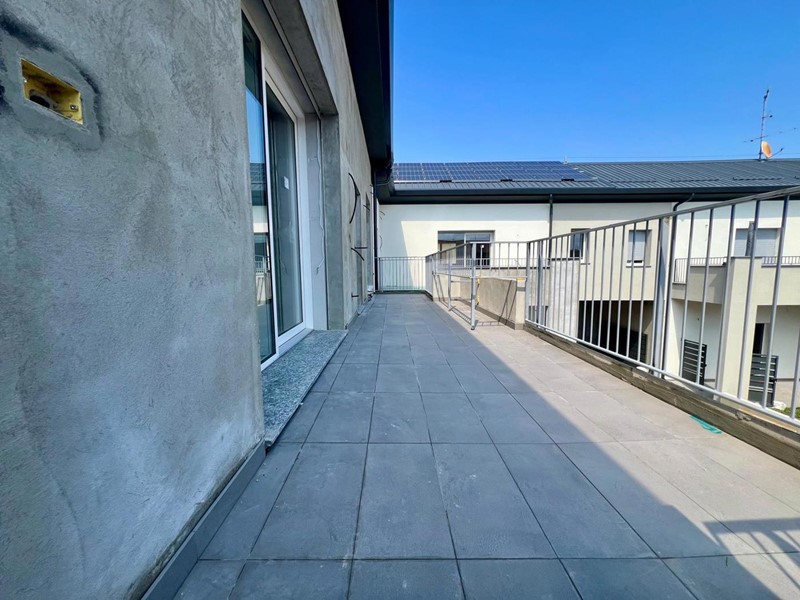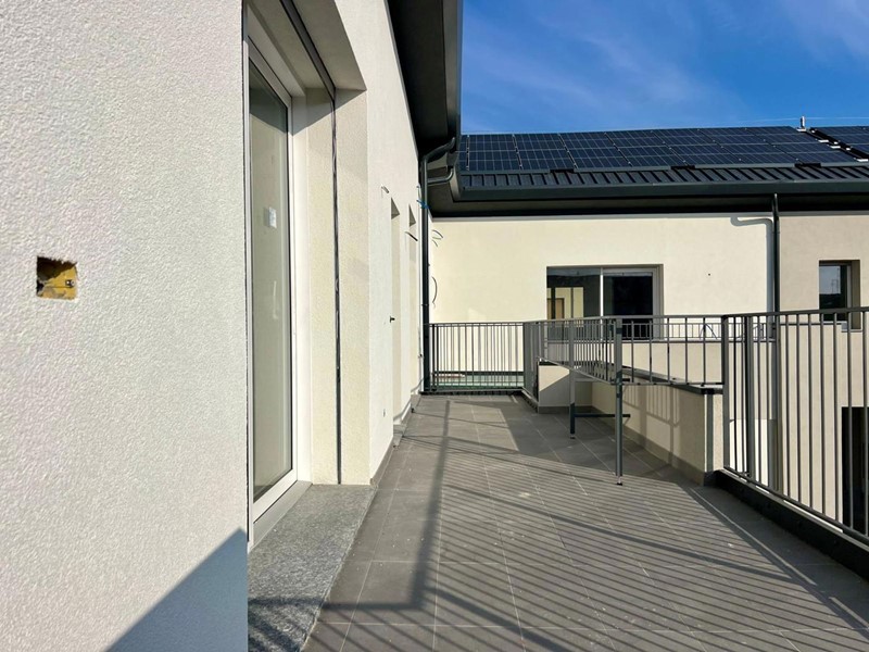 L'appartamento è composto da ingresso da terrazzo di 20 mq, ampio soggiorno con cucina a vista, disimpegno, camera matrimoniale con bagno, cameretta, ed un ulteriore bagno. La soluzione è collegata al sottotetto di altri 80 mq da rifinire con pavimentazione.