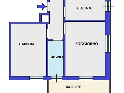 La soluzione è composta da: soggiorno con cucina a vista e balcone , camera da letto, studio e bagno.