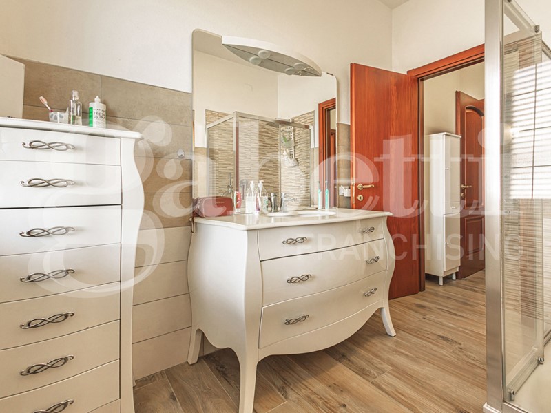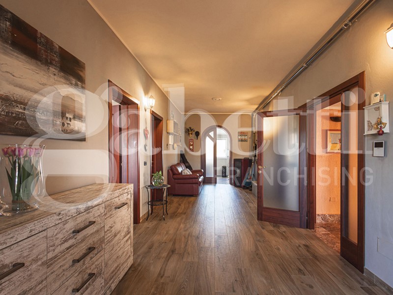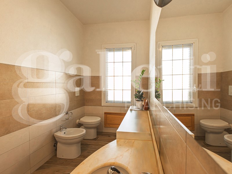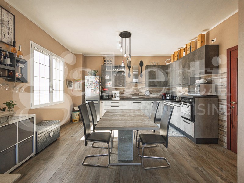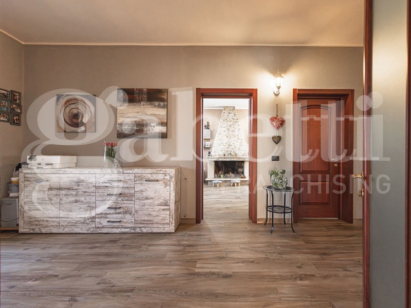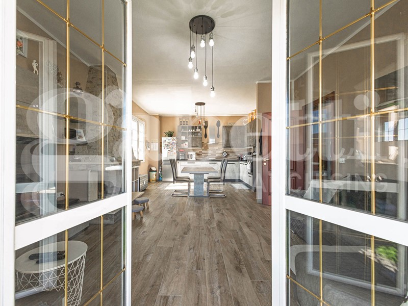 L'immobile di ampie metrature è composto da soggiorno di 24 mq, cucina abitabile di 34 mq con camino a legna, bagno di 10 mq con annessa lavanderia, doppio servizio di 5 mq, studio e camera singola di 22 mq, veranda di 13 mq che offre uno spazio aggiuntivo da sfruttare per momenti di relax all'aperto