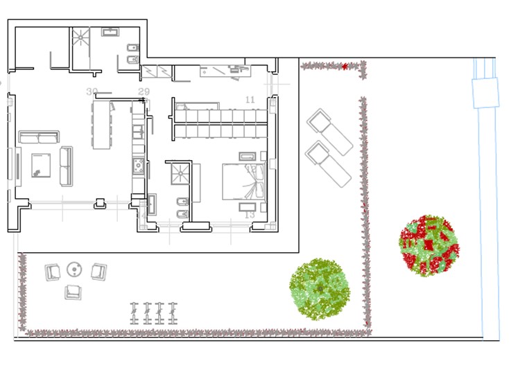 L'abitazione si compone di ampia zona giorno open space con cucina a vista, 3 camere da letto luminose e ben distribuite, doppi servizi, ripostiglio e giardino privato.