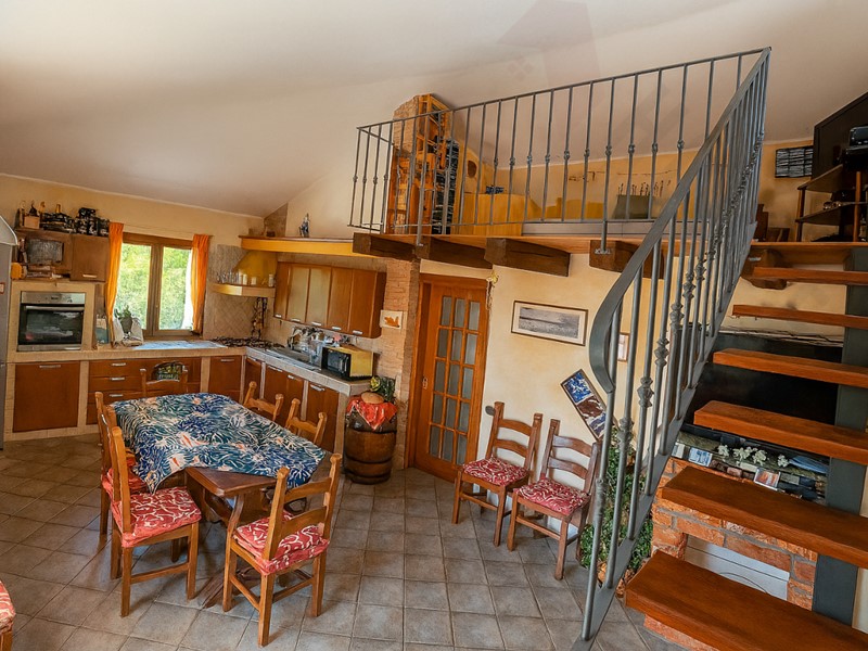 L'immobile è così composto: Ampia zona giorno di 47 mq con cucina a vista, area relax e camino, due camere spaziose, due bagni comodi e funzionali, accesso diretto a una veranda panoramica di circa 30 mq, attrezzata con barbecue, perfetta per cene all’aperto con vista mare e montagna, soppalco di circa 12 mq ideale come studio o zona lettura, esposizione su quattro lati, luminosità garantita tutto il giorno.